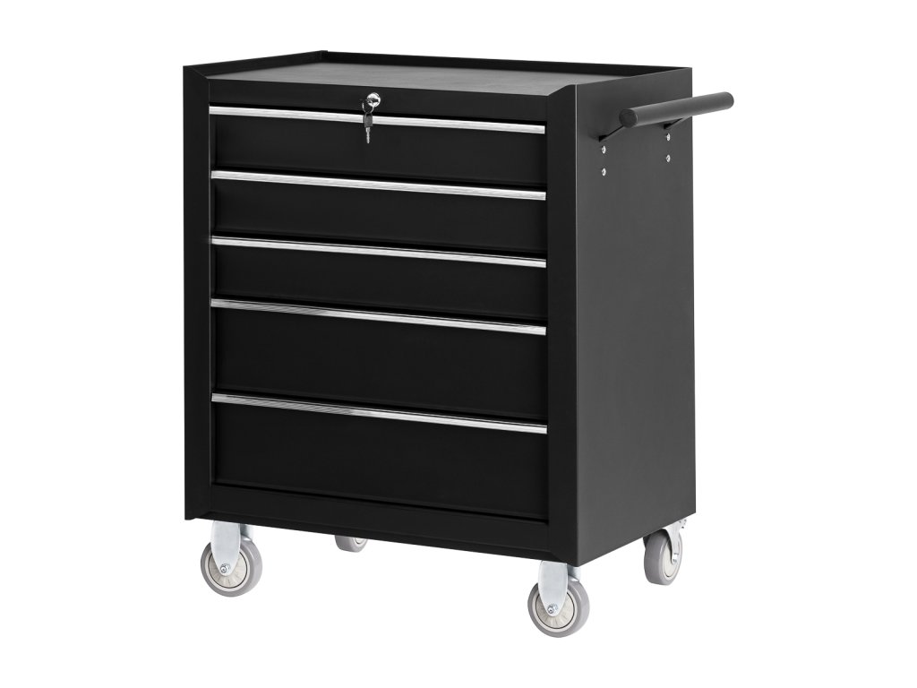 Vozík je vybaven pěti prostornými zásuvkami, které poskytují dostatek úložného prostoru pro tetovací nástroje, hygienické pomůcky i jednorázové příslušenství. Zásuvky jsou uzamykatelné na klíč, což zajišťuje bezpečné uložení vybavení a dokumentace.