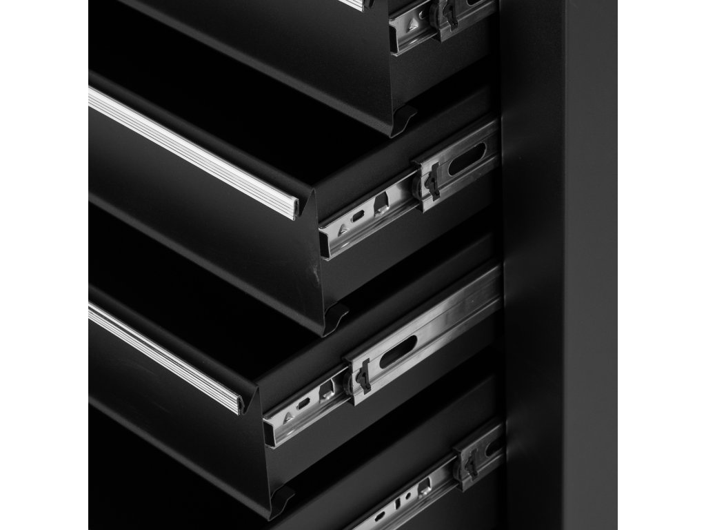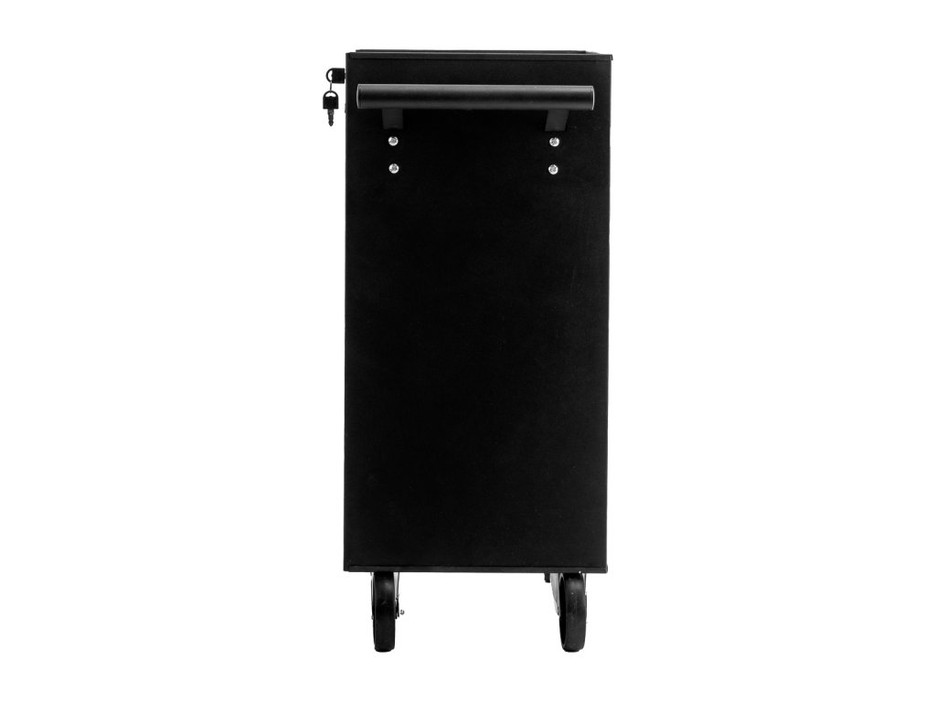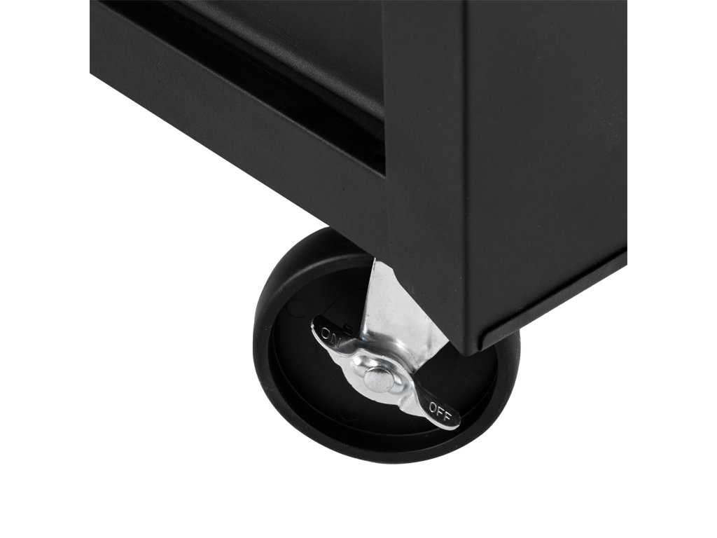 Díky čtyřem plastovým kolečkům, z nichž dvě jsou opatřena brzdou, je manipulace snadná a zároveň stabilní. Boční madlo umožňuje přesné a pohodlné manévrování. Uzamykatelné zásuvky chrání vybavení, dokumentaci nebo citlivé materiály před nechtěným vysunutím.