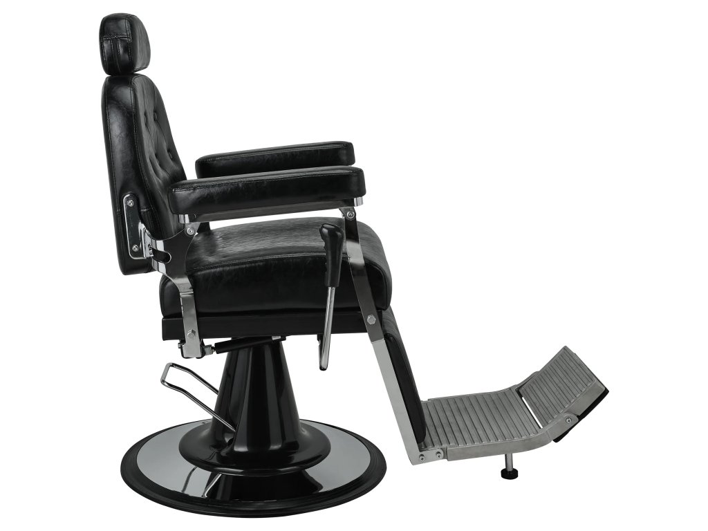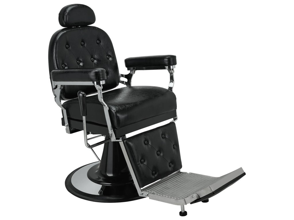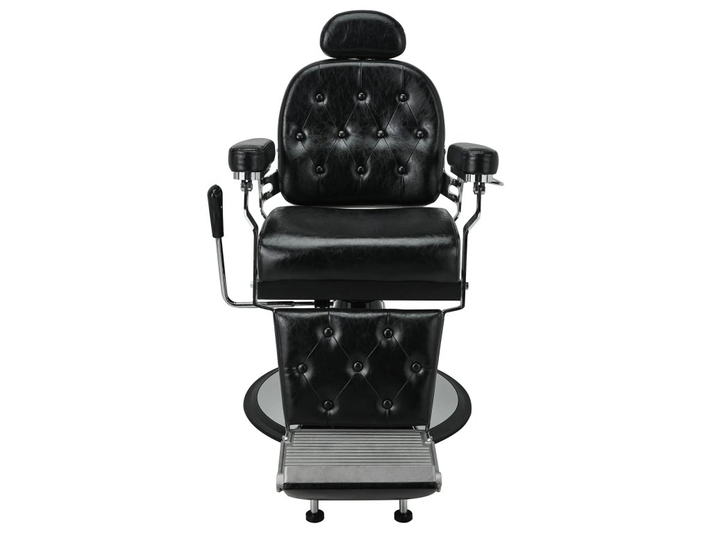 - Černé lesklé čalounění s hlubokým prošíváním a dekorativními knoflíky