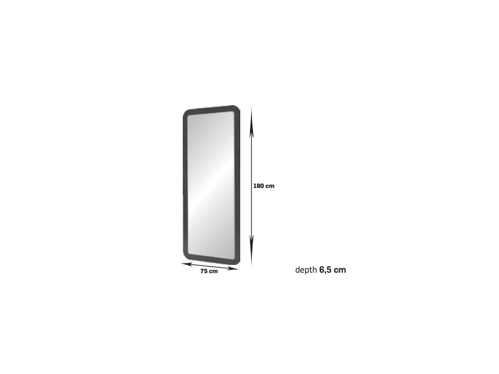 Rám je vyroben z černého plastu PMMA s chladným bílým LED osvětlením nebo bez něj. Velké zrcadlo opticky zvětší prostor.