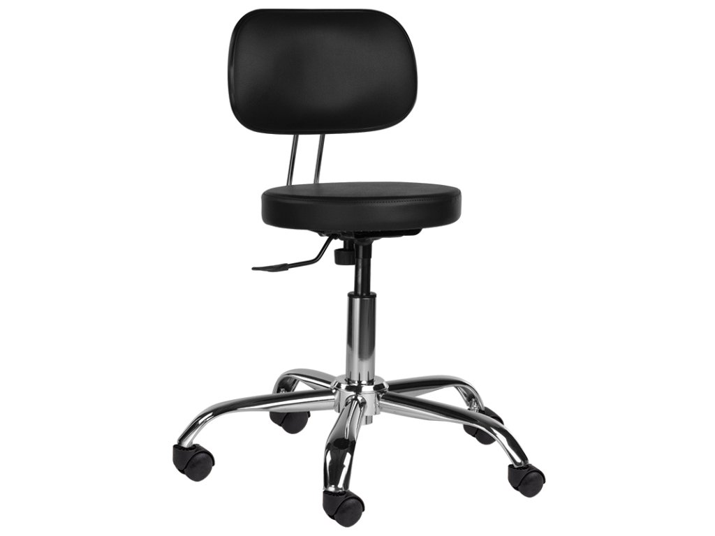 Kadeřnický taburet H02 s plochým otočným sedákem a opěrkou je jednoduchý a funkční. Doporučujeme ji do kadeřnických, holičských a kosmetických salonů.