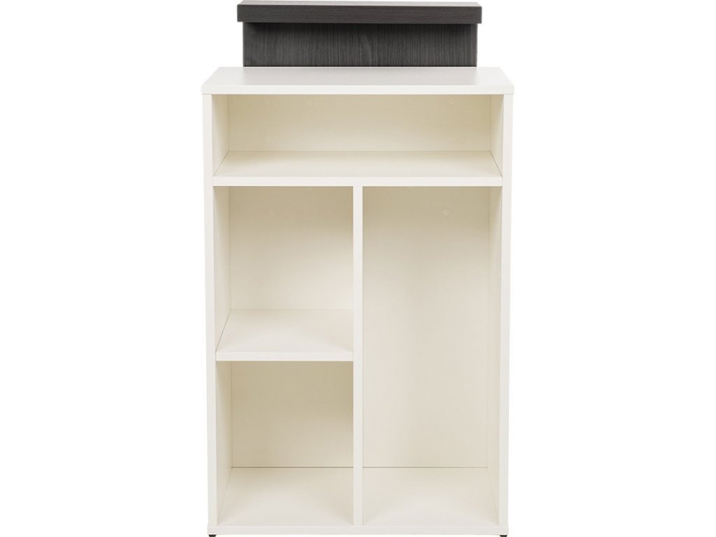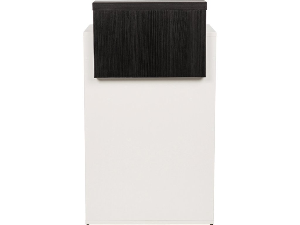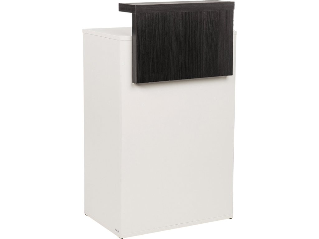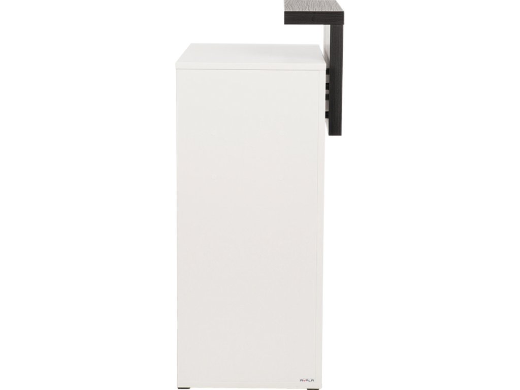 Skladem je k dispozici v bílé matné nábytkové desce s nástavcem v tmavém dekoru wenge.