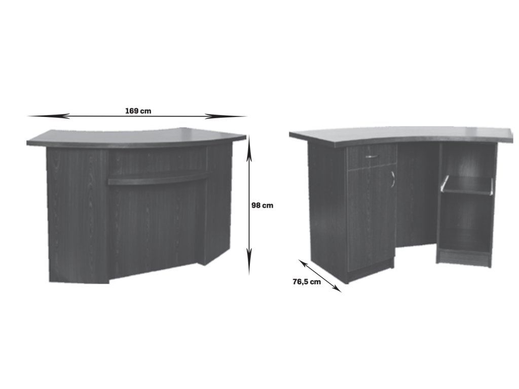 Recepční stůl je k dispozici pouze na objednávku, ale vyrobíme vám ho ve všech dekorech nábytkových desek z naší nabídky.