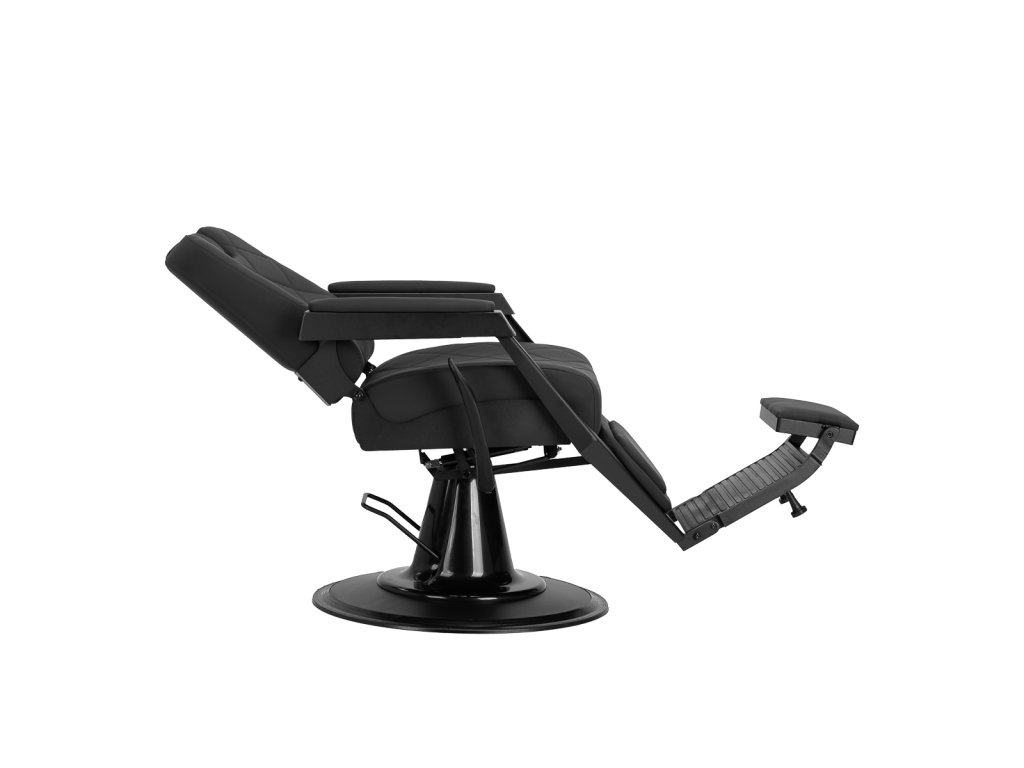 Nastavitelné opěradlo, podnožka a vysouvací opěrka hlavy (až o 20 cm) umožňují vytvořit pohodlnou polo-ležící pozici ideální pro holení, úpravu vousů nebo relaxační procedury. Sedák je vyplněn kvalitní pěnou, která si drží tvar i po delším používání, a potažen měkkou syntetickou kůží, která je odolná vůči vlhkosti a snadno se čistí.