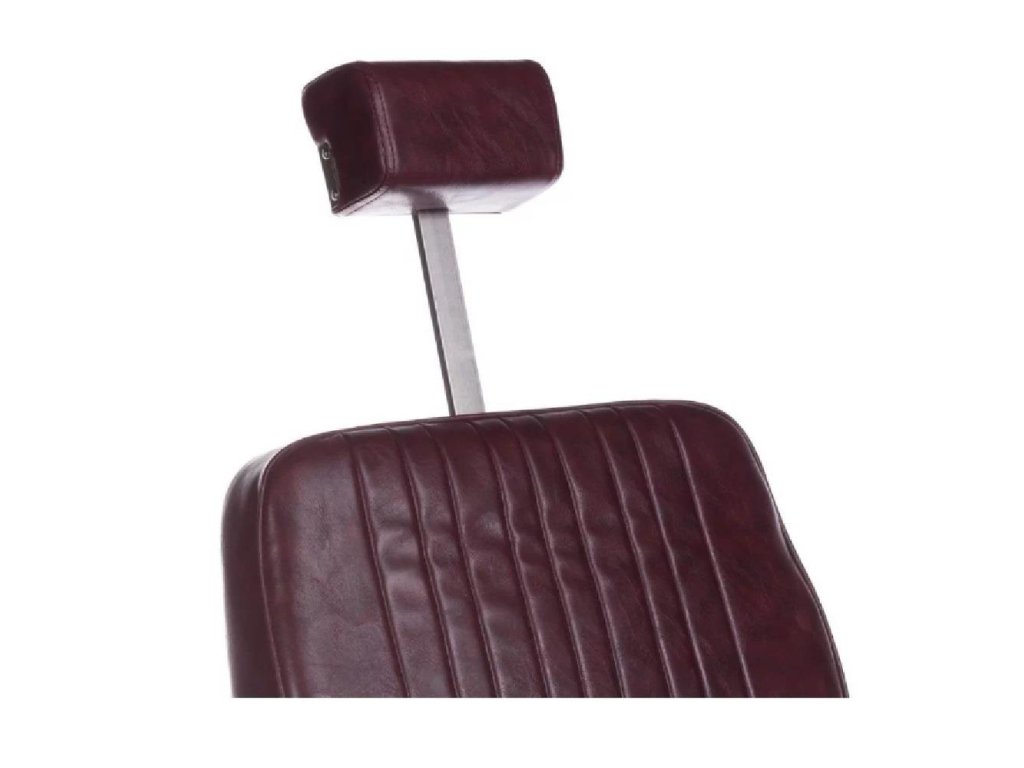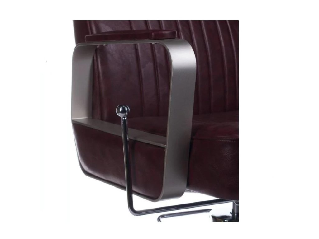 Křeslo je čalouněno do hnědé ekologické kůže, která působí reprezentativně, je odolná a snadno se čistí. Tento odstín se skvěle hodí do barber shopů a salonů s tradičnějším nebo vintage stylem.