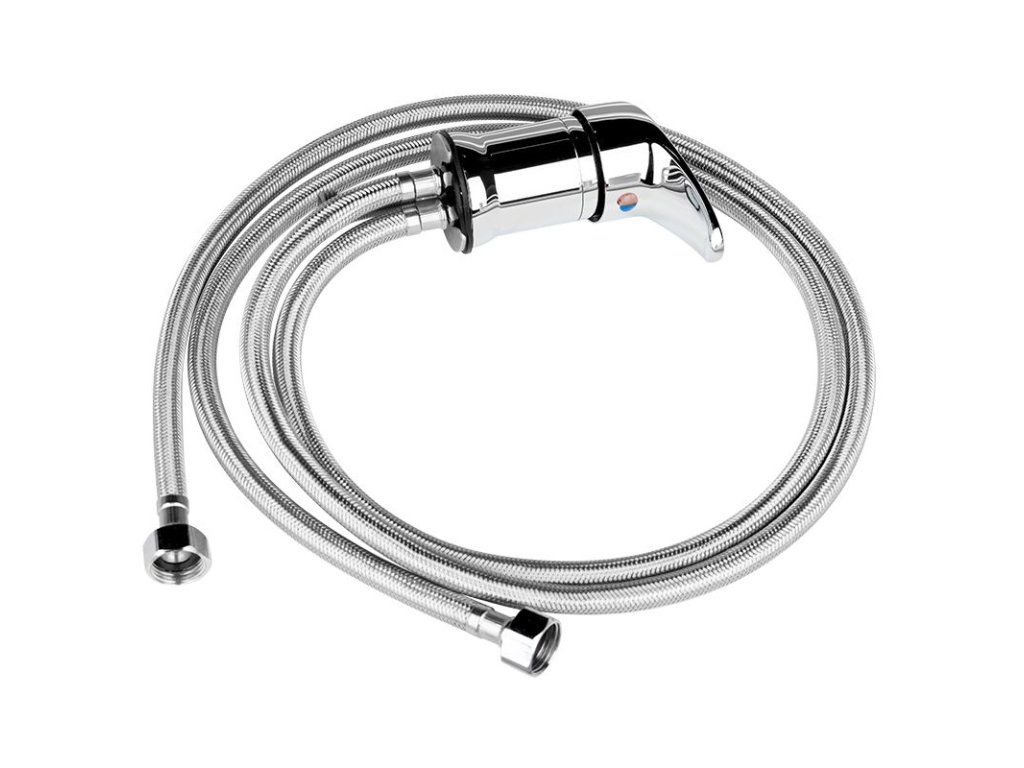 Baterie, která vyhovuje většině kadeřnickým mycím boxům. Faucet z mosazi, chromovaný s vysokou odolností proti oděru. Spojovací hadice zajištěné ocelovým opletením, které zaručuje dlouhou životnost.