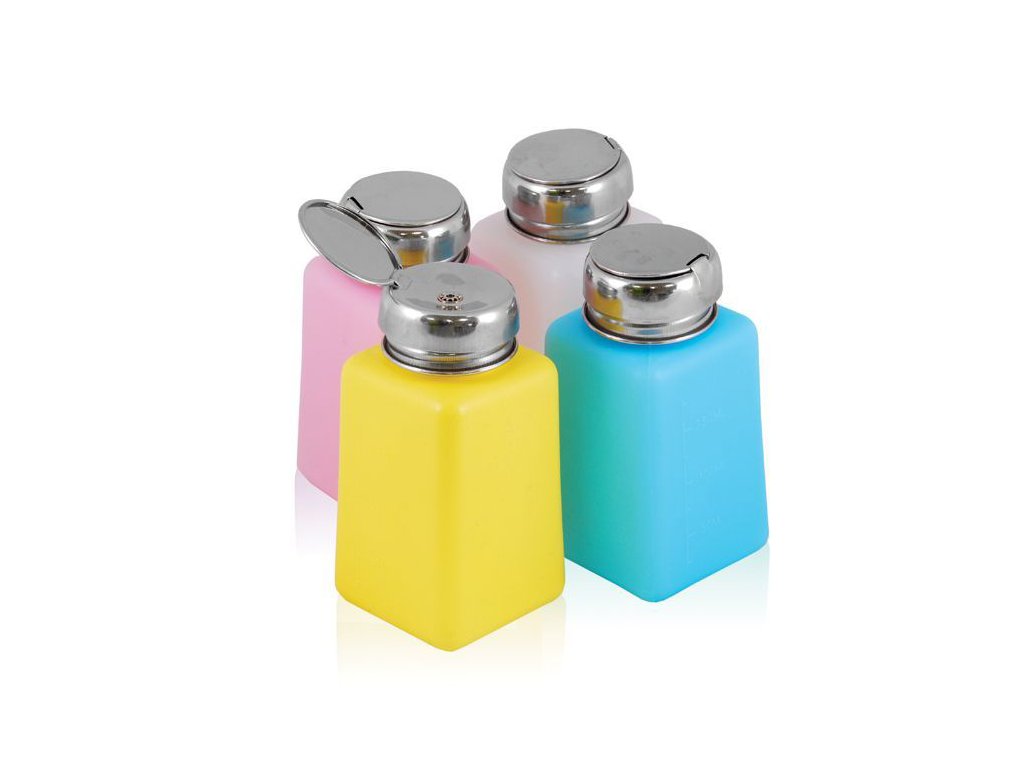 Láhev s kovovou pumpičkou a plastovou nádobkou 180 ml na všechny tekutiny. Práce je mnohem jednodušší díky pohodlnému nanášení tekutin na vatový tampon nebo vatový tampon, který je nezbytný v každé nehtové modeláži