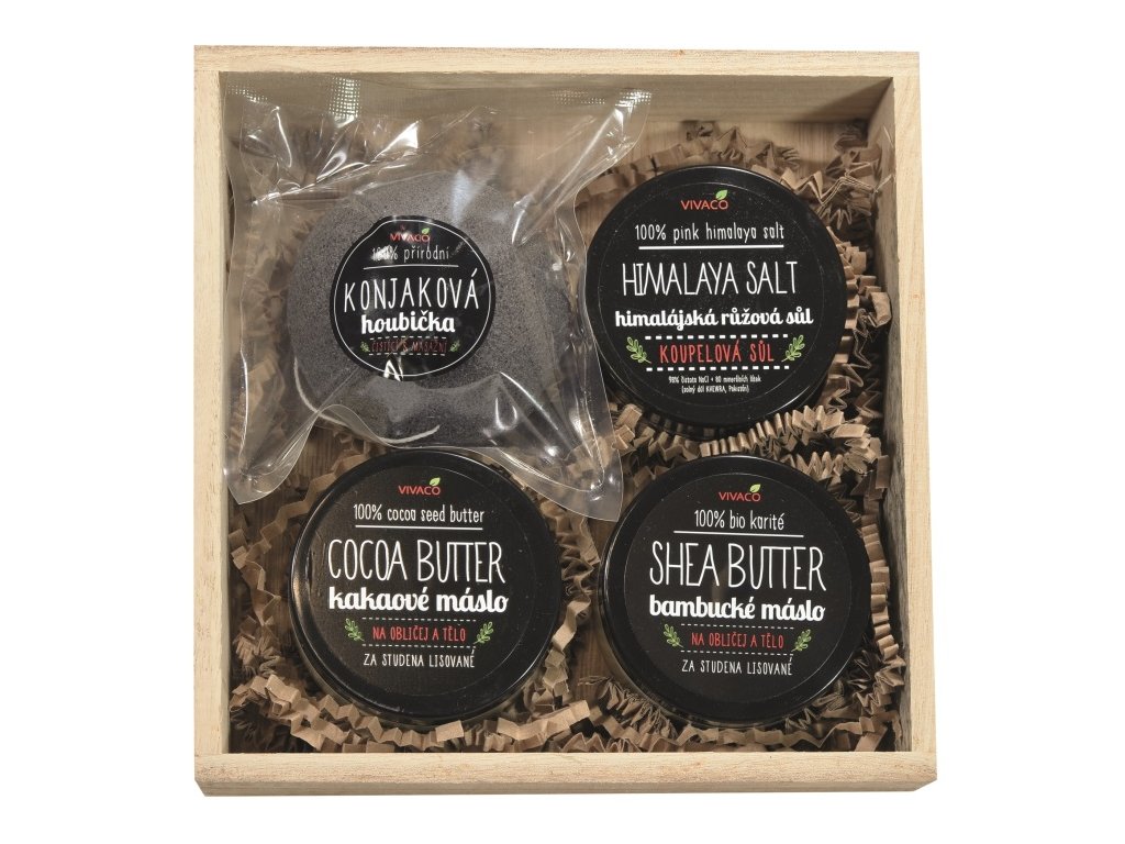 Dárkové balení bio kosmetiky pro pleť, tělo a duševní pohodu, v dřevěné dekorativní bedýnce. Dárek, který potěší každého milovníka přírodní kosmetiky.