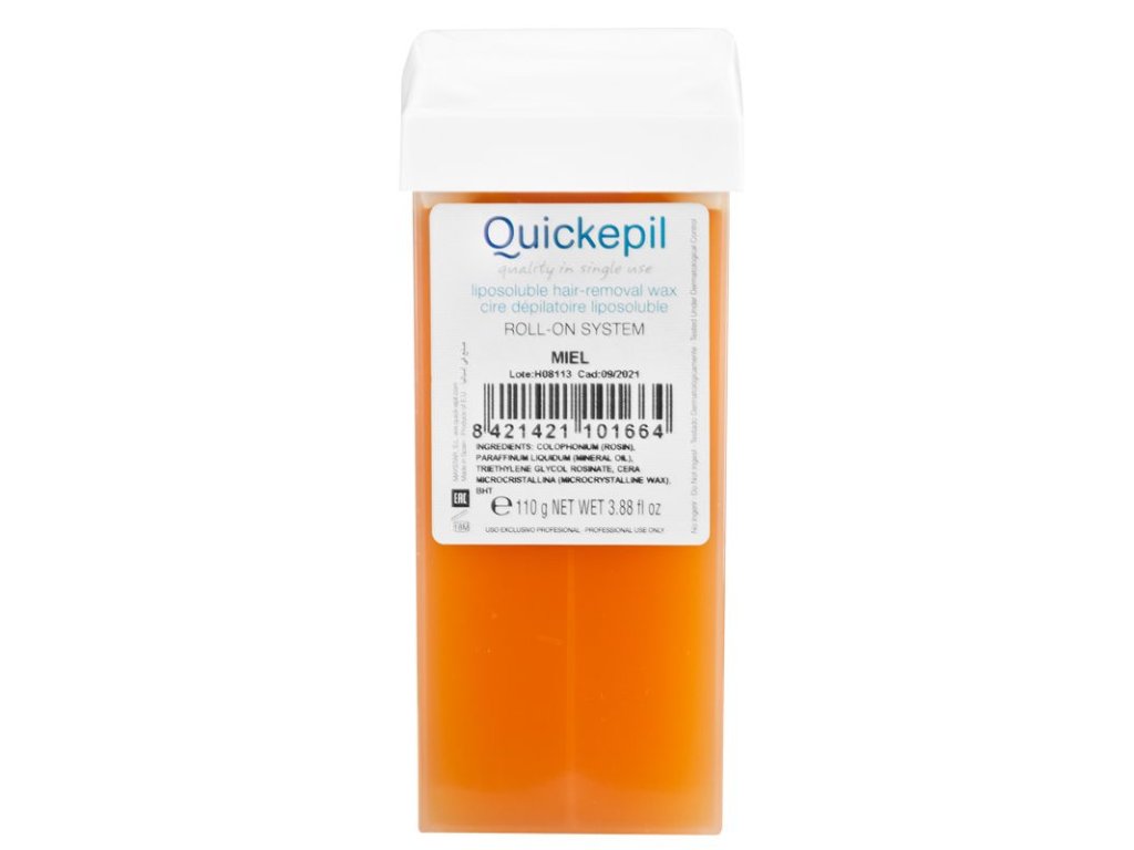 Roll-on vosk QUICKEPIL je speciálně vyvinut pro kosmetičky, které hledají vynikající výsledky. Díky speciálnímu receptu válec roztáhne vosk na mnohem tenčí proužky, což způsobí téměř okamžité ochlazení, čímž se minimalizuje pečení. Produkt je poté snadno odstraněn proužky. Univerzální vosk na všechny druhy kůže na bázi včelího vosku.