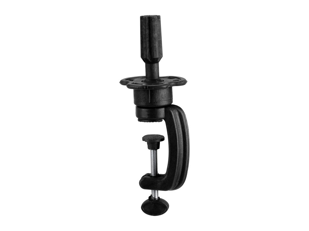Díkyminimalistickému designu stativ dokonale zapadne do interiéru každého kadeřnického salonu nebo školícího prostoru. Lehká, ale robustní konstrukce z odolného plastu zajišťuje mobilitu, trvanlivost a odolnost proti mechanickému poškození. Vysoce kvalitní materiály použité při výrobě zaručují dlouhou životnost a ergonomický design zvyšuje pohodlí při práci. Stativ je vybaven rukojetí fungující na principu svěráku s maximálním rozevřením 4,5 cm, což umožňuje snadné a stabilní upevnění na většinu stolních desek.