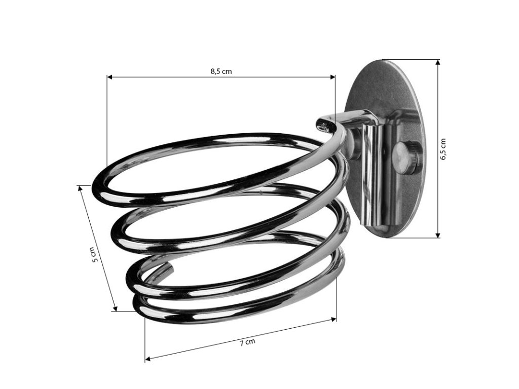 Tento držák vysoušeče vlasů vám pomůže udržet sušič snadno na dosah. Vyrobeno z pochromované oceli, snadno se instaluje