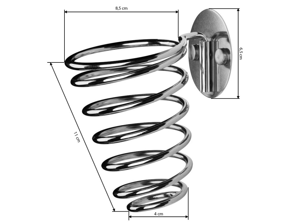 Tento držák vysoušeče vlasů vám pomůže udržet sušič snadno na dosah. Vyrobeno z pochromované oceli, snadno se instaluje