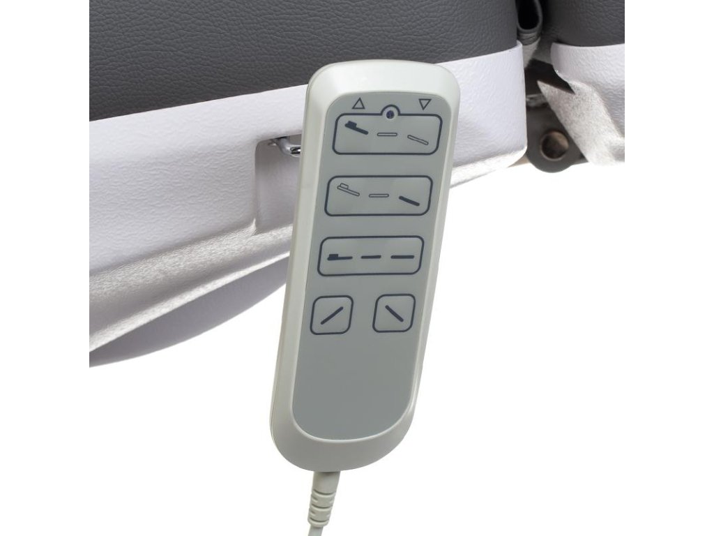 S rozměry 192 × 82 cm a nastavitelnou výškou 58–89 cm poskytuje dostatek prostoru pro pohodlné polohování klienta. Opěradlo lze zvednout až do úhlu 85°, opěrku nohou spustit do 90° a kolébku nastavit až do 30°. Hmotnost 82 kg zajišťuje stabilitu a pevnost konstrukce.