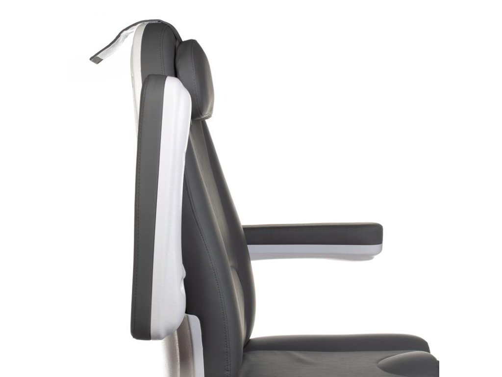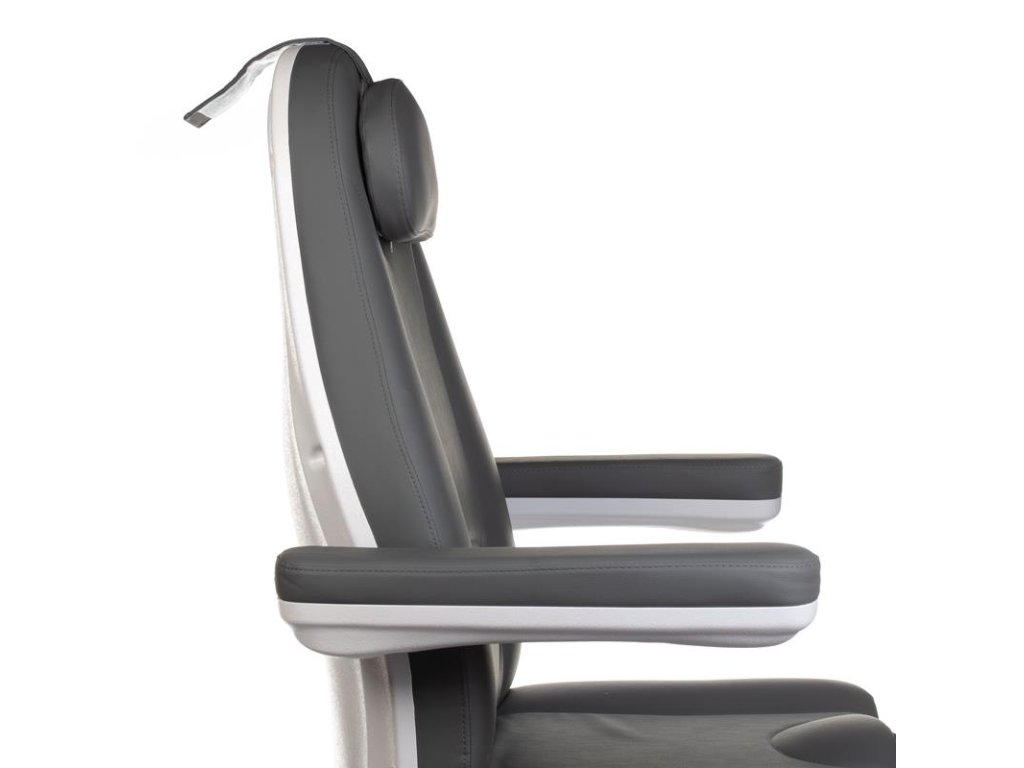 Odnímatelné područky usnadňují přístup k zákazníkovi a rozšiřují možnosti využití křesla při různých typech ošetření. Polstrování z pružné pěny zajišťuje pohodlí i při delších procedurách, zatímco čalounění z vysoce kvalitní ekologické kůže je příjemné na dotek, odolné vůči vlhkosti a snadno se čistí.