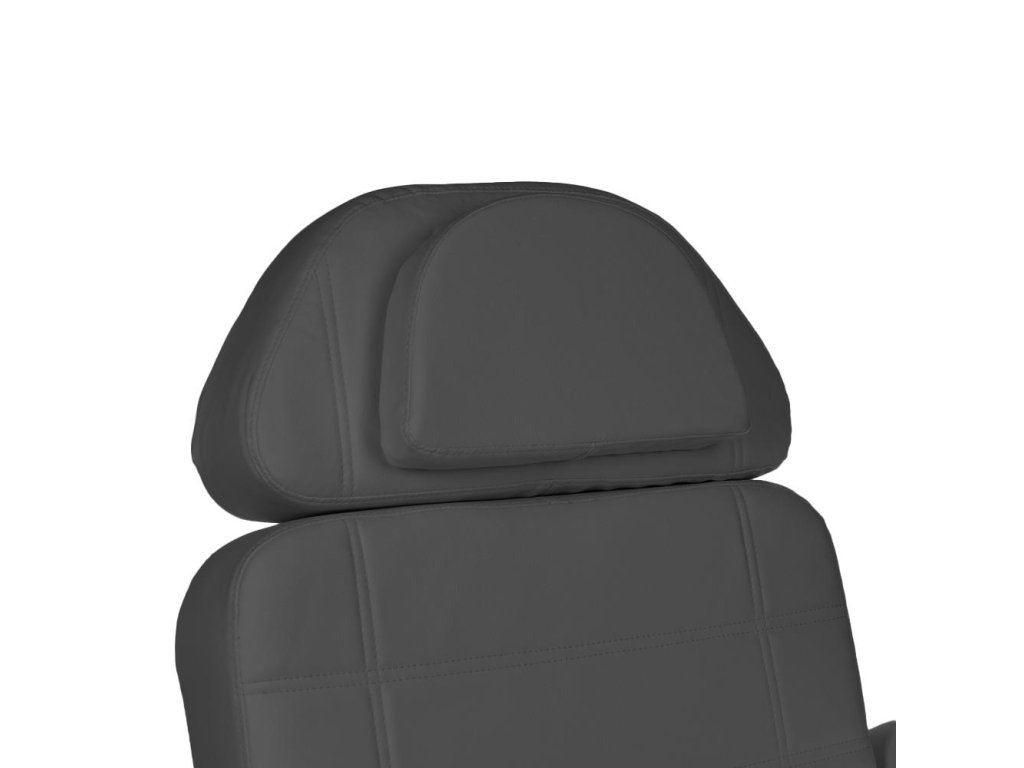 Čalounění z kvalitní šedé ekologické kůže působí elegantně a moderně, zároveň je odolné a snadno se udržuje v čistotě. Měkké polštáře z pružné pěny poskytují klientům pohodlí i při delších ošetřeních. Odnímatelné područky zajišťují flexibilitu při práci a umožňují lepší přístup během procedur. Stabilní konstrukce a nosnost až 160 kg zaručují spolehlivost při každodenním profesionálním využívání.