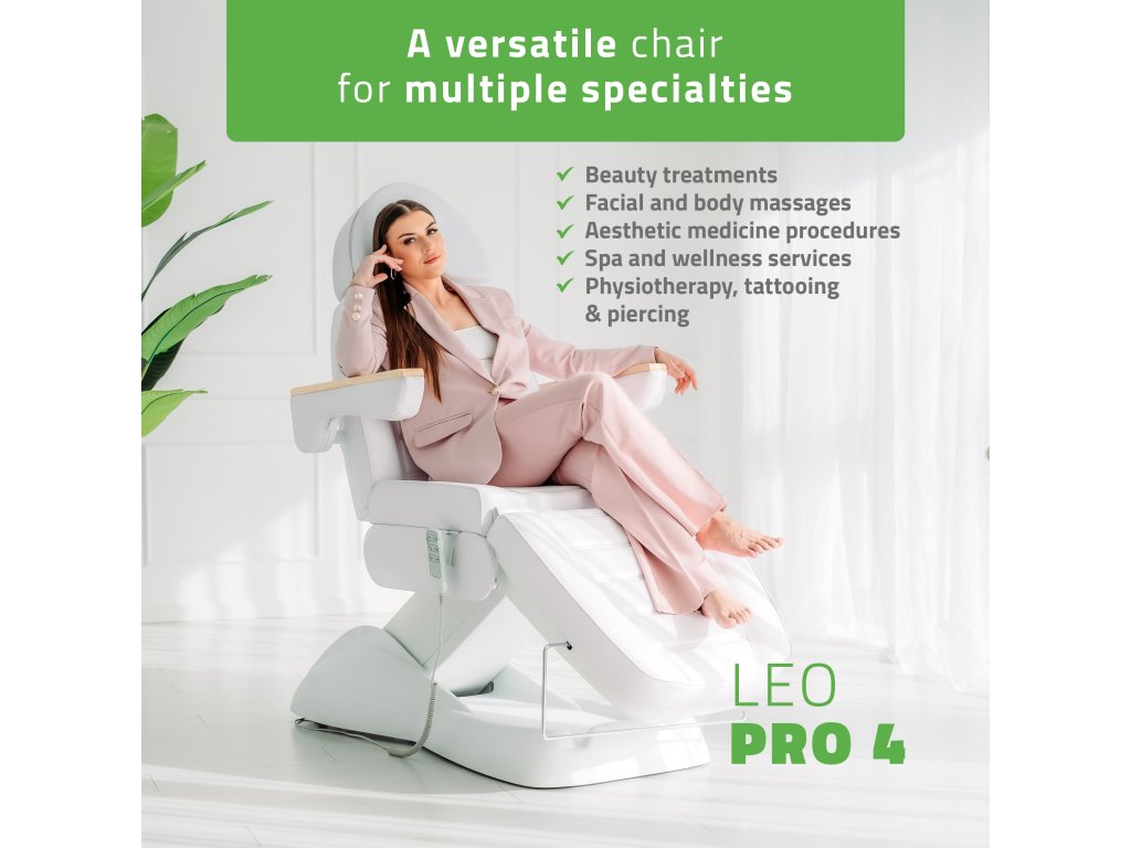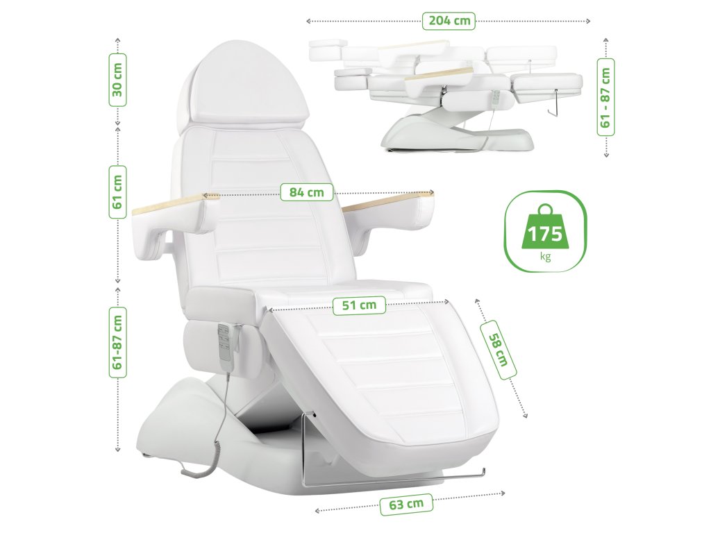 Kosmetické lehátko Comforma 4 v elegantní bílé barvě je elektrické kosmetické lehátko navržené pro náročné profesionály. Spojuje komfort, ergonomii a styl, díky čemuž je ideální pro moderní salony krásy, SPA, masáže i estetické kliniky.