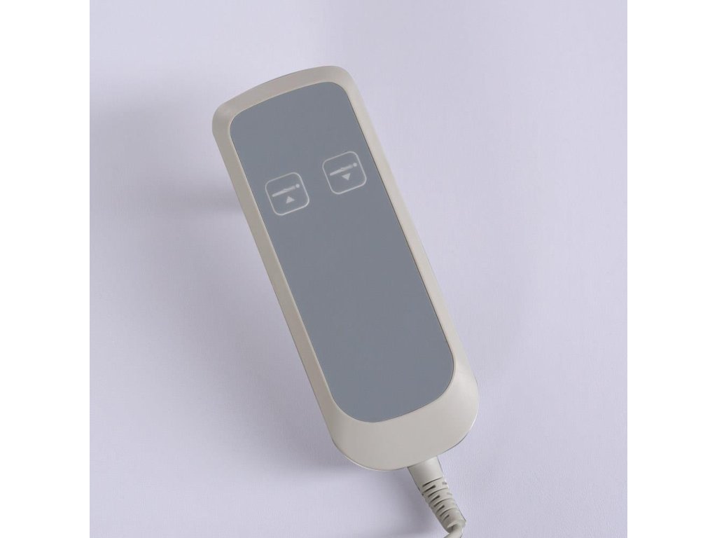 - Výška je elektricky nastavitelná pomocí dálkového ovládání. Úhel podpory zad nastavitelný ručně pomocí ráčny.