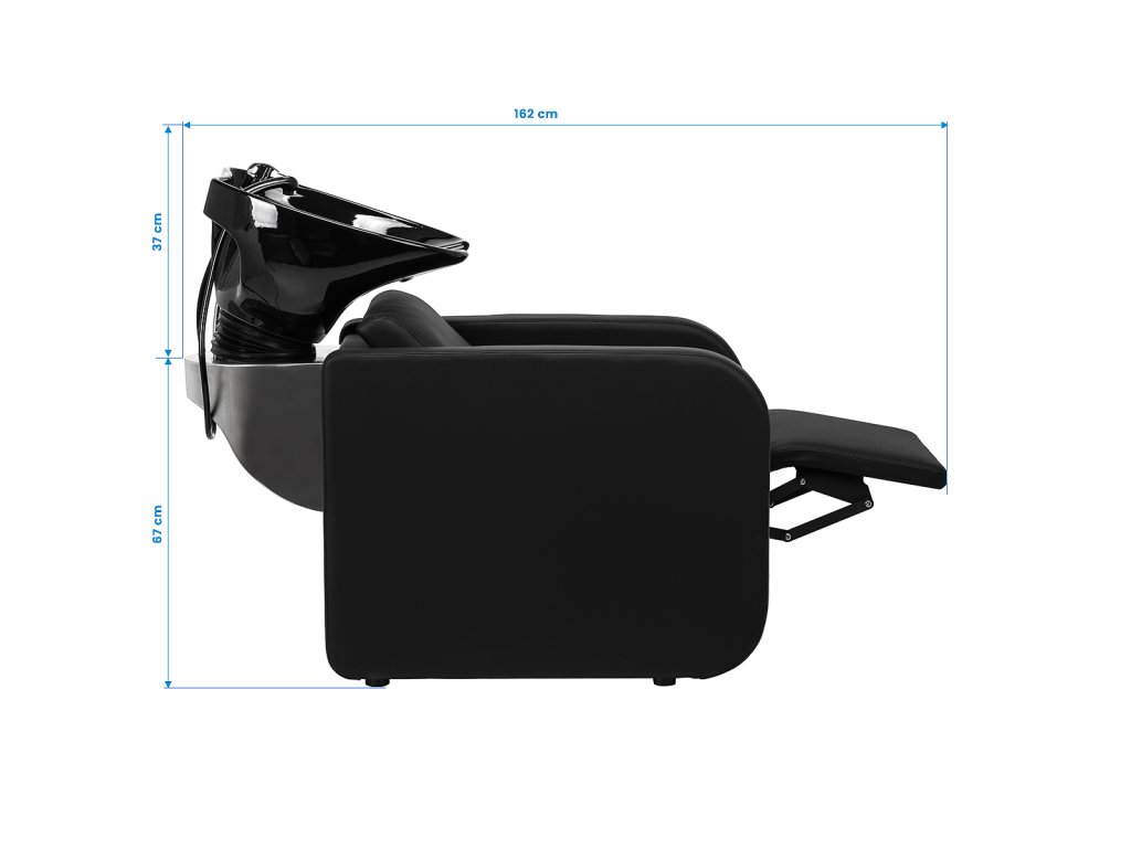 Elektrický kadeřnický mycí box Sya umožňuje pohodlné mytí vlasů a zajišťuje snadné přizpůsobení polohy potřebám klienta.