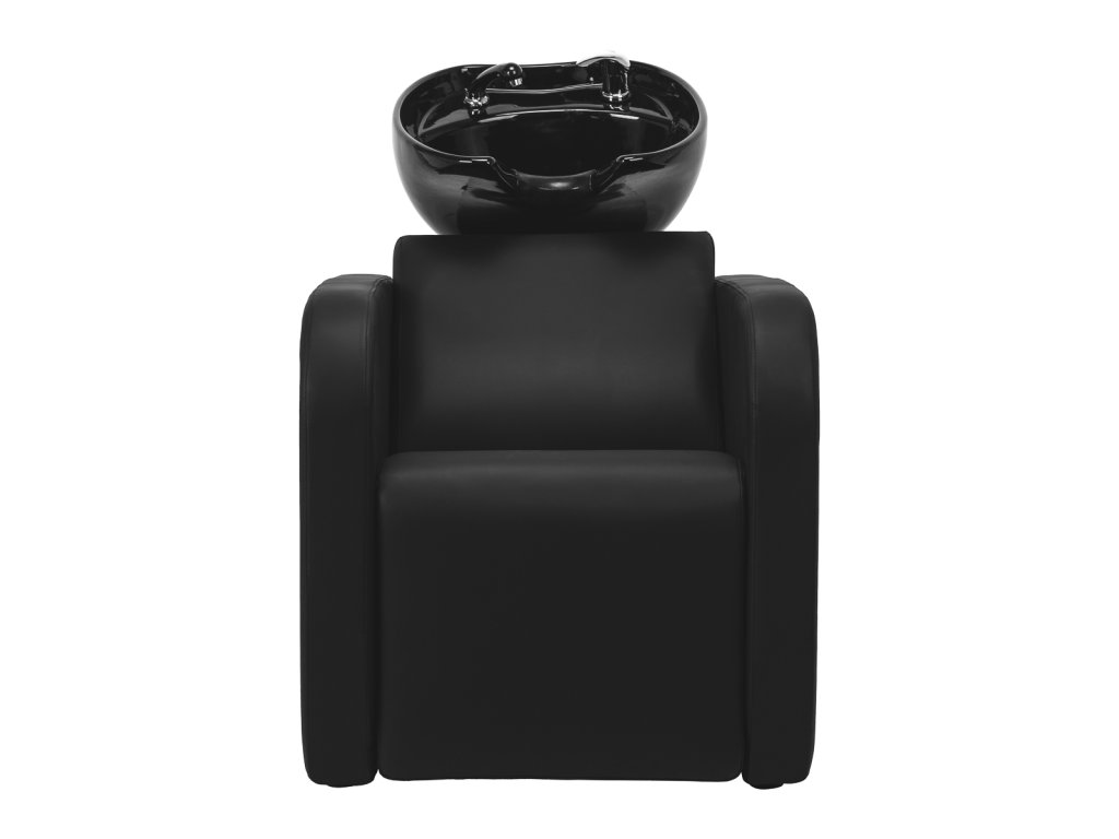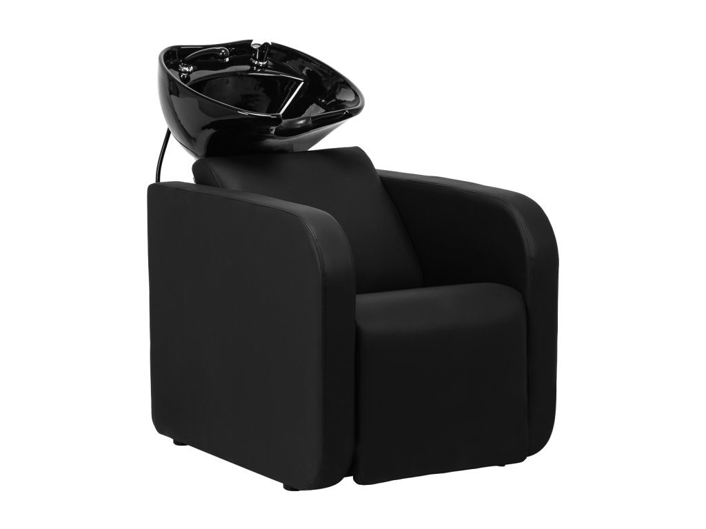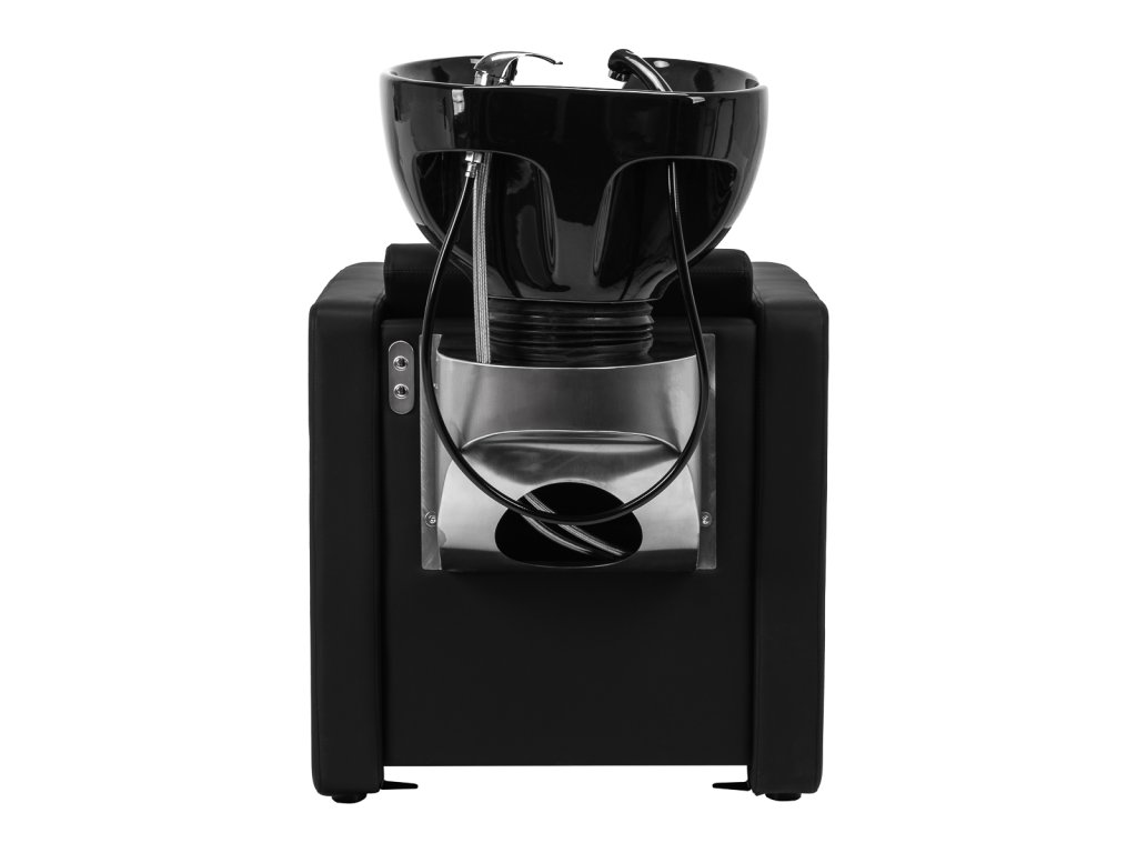 Hloubka keramického umyvadla v černé barvě umožňuje více procedur kadeřnických služeb a zabraňuje šplíchání vody ven.