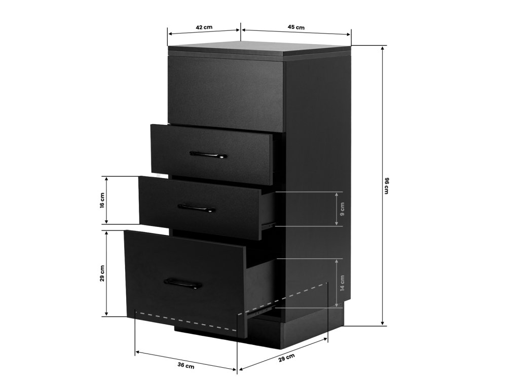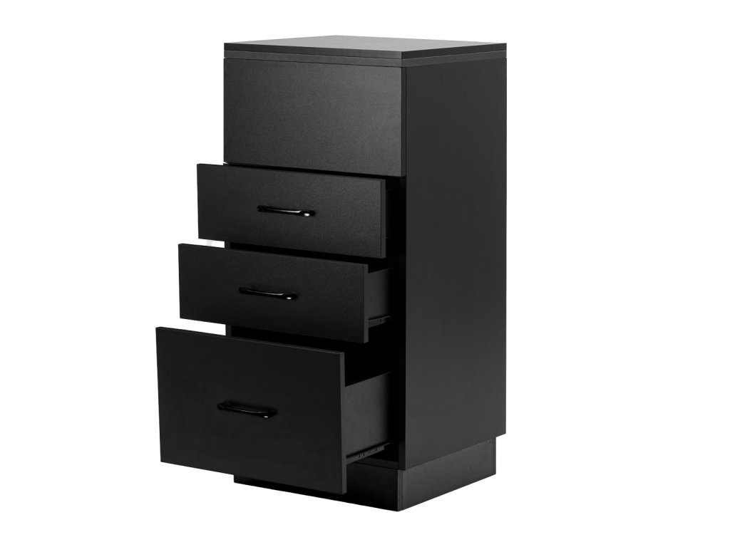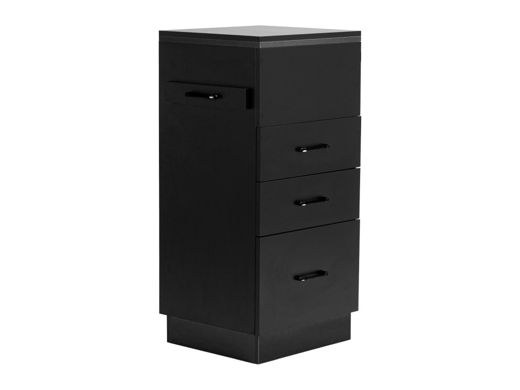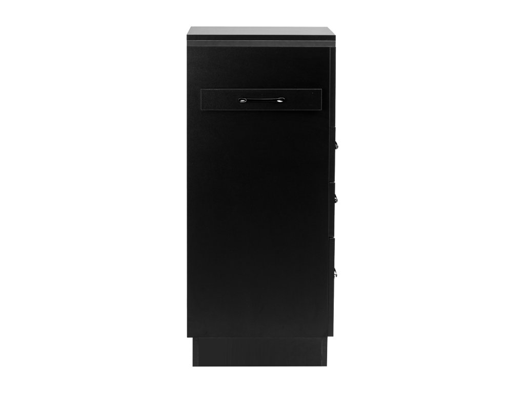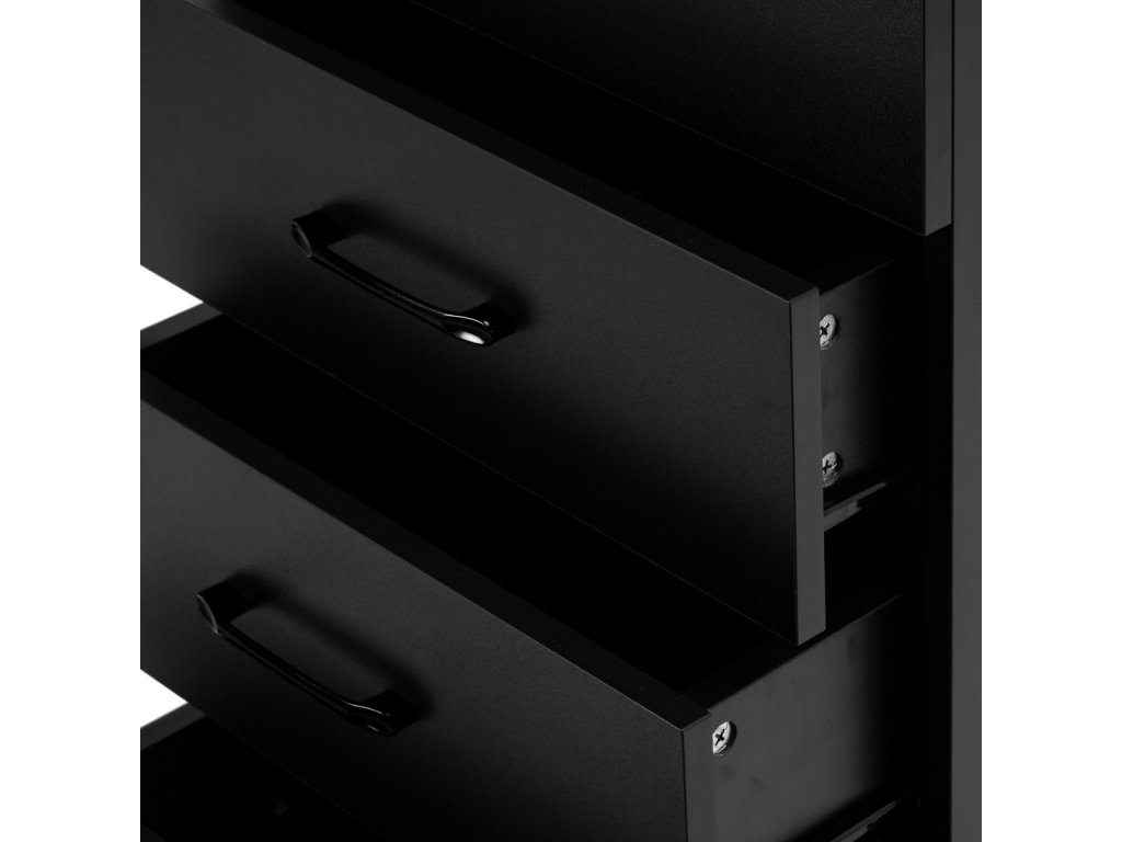 Klasická černá barva dodává pomocníkovi moderní a prestižní vzhled, který skvěle zapadne do minimalistických i výraznějších interiérů. Robustní konstrukce zaručuje stabilitu, hladký povrch usnadňuje údržbu a černé úchyty doplňují elegantní design a umožňují pohodlné otevírání zásuvek.