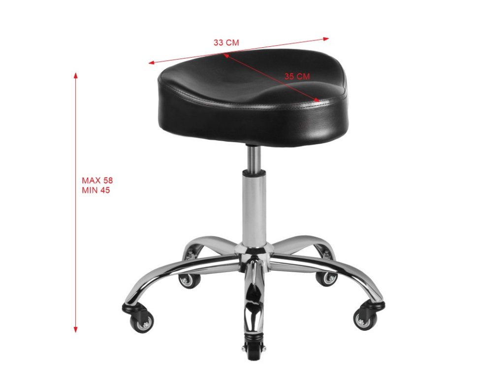Taburet je vyroben z nejkvalitnějších materiálů a je dokonale zpracovaný. Víme, jaké důležité je pohodlí při práci, a proto má měkké a mimořádně pohodlné sedadlo potažené vysoce kvalitní černou eko kůží
