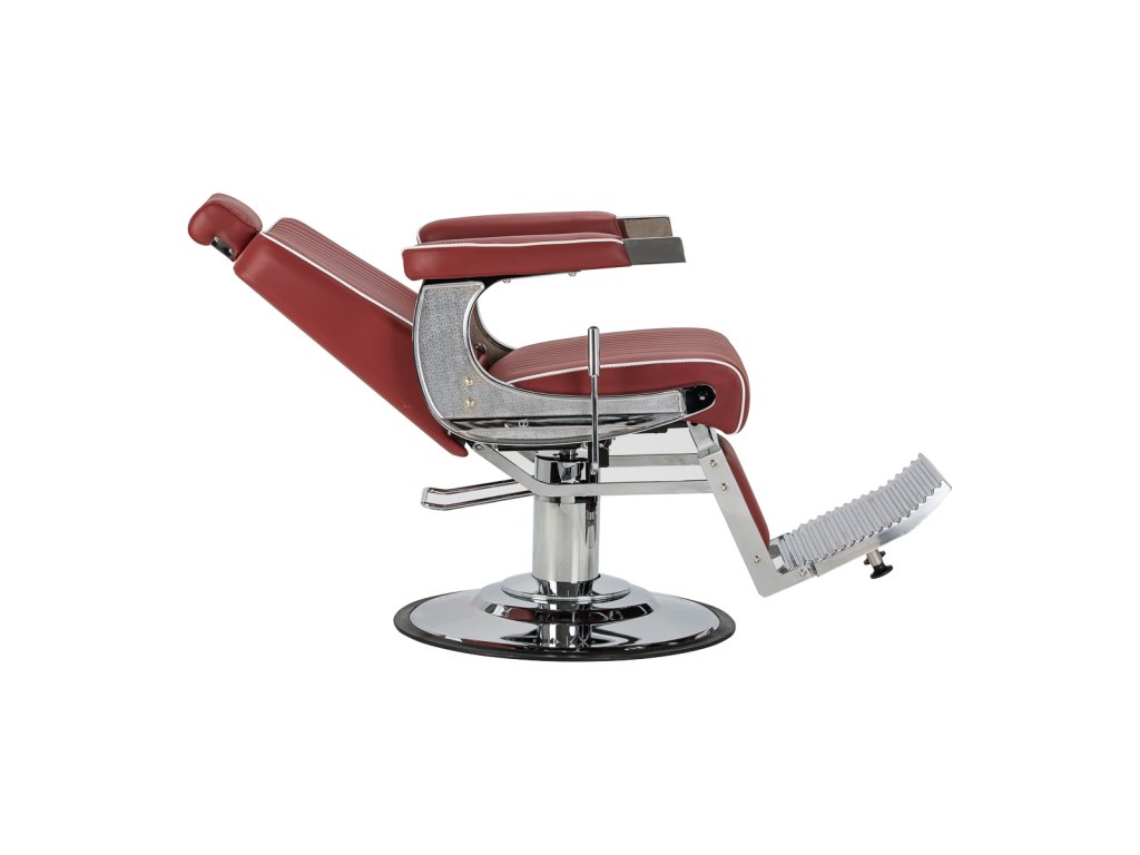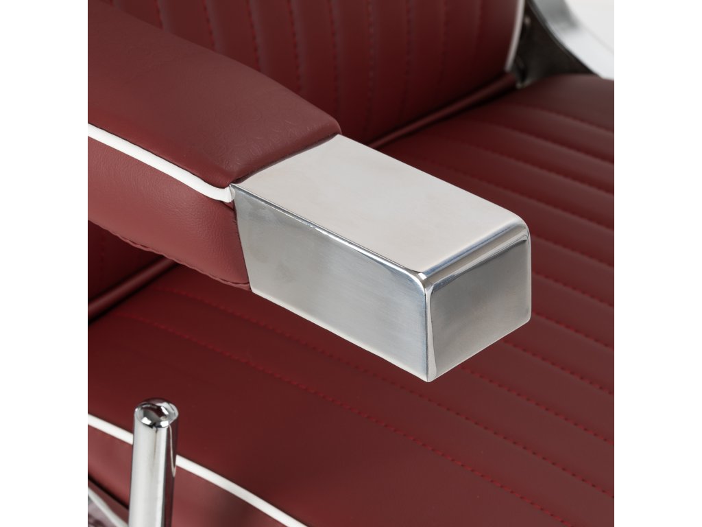Holičské barber křeslo Cardinal Red Chrome je profesionální barber křeslo určené pro každodenní provoz v holičstvích a barbershopech. Konstrukce křesla je postavena na pevné chromové základně, která zajišťuje vysokou stabilitu při práci a bezpečné používání i při plném zatížení.