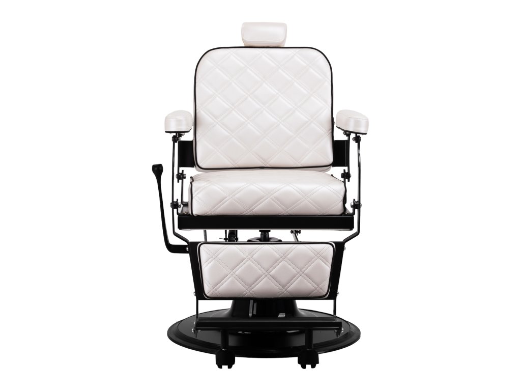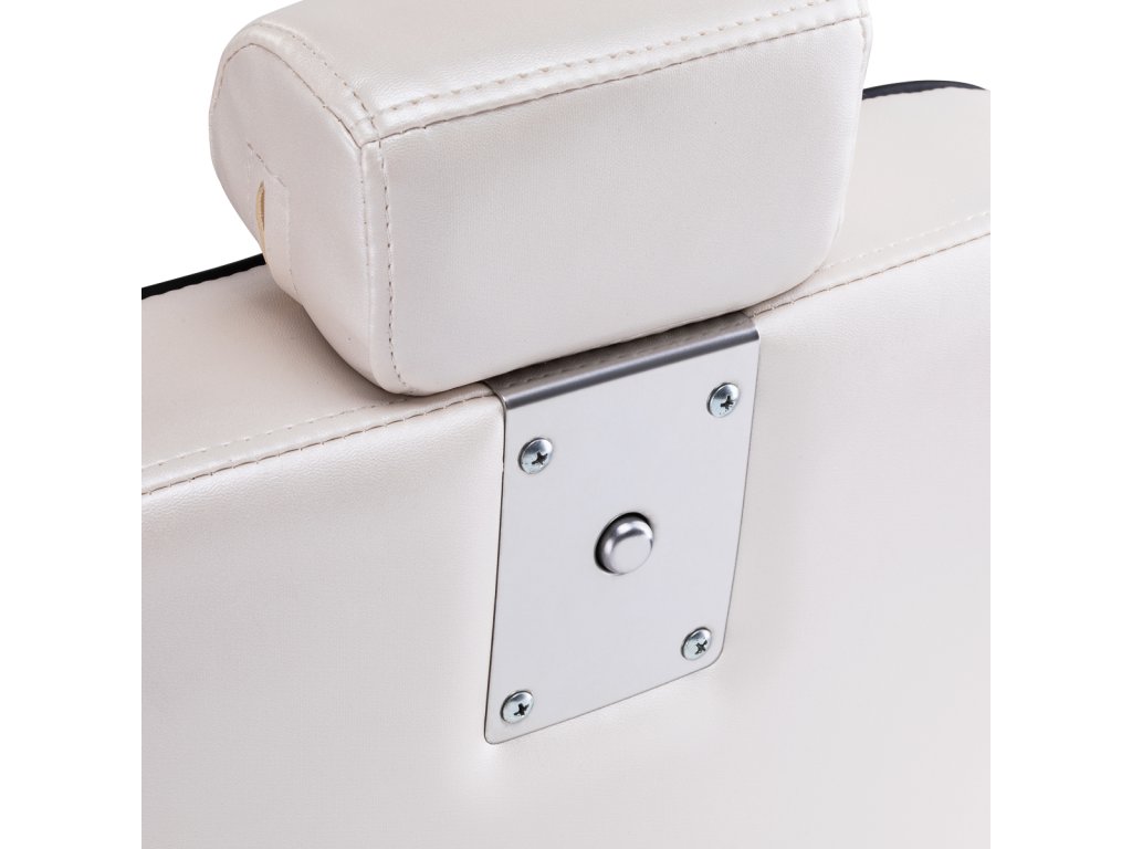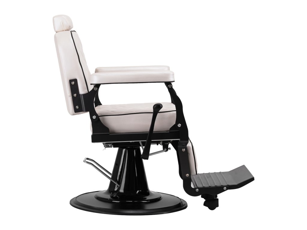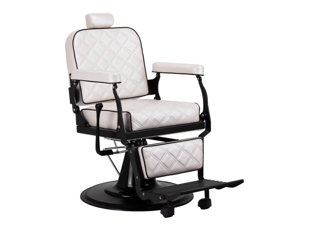 Pevná základna zajišťuje stabilitu a vysoký komfort používání. Výplň sedáku z pěny odolné proti deformaci a čalounění z na dotek příjemné syntetické kůže s perleťovou úpravou zajišťují odolnost nábytku a pohodlné používání po dlouhou dobu . Materiály jsou odolné proti vlhkosti, trvanlivé a snadno se čistí. Krémový odstín čalounění dodává křeslu jedinečný charakter a jeho elegantní styl dokonale ladí s interiérem holičství.