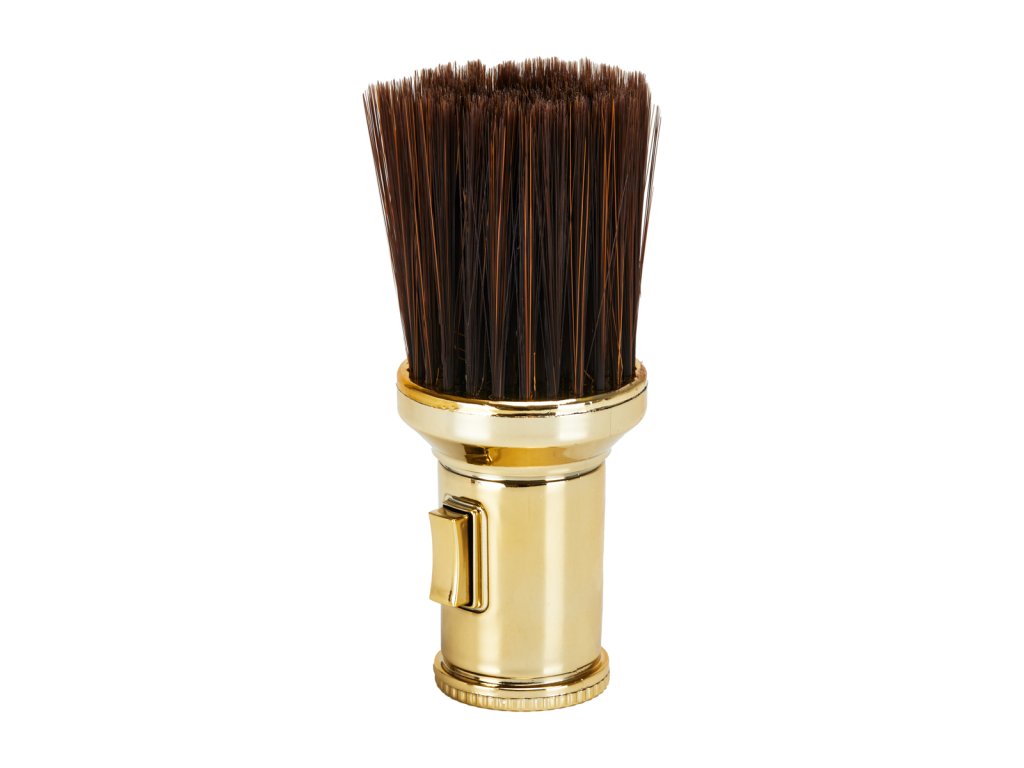 Profesionální kadeřnický nákrčník - nepostradatelný v každém kadeřnictví - má husté štětiny, které jsou příjemné a jemné na dotek. Umožňuje bez námahy odstranit jakýkoli chloupek, aniž by způsobil podráždění. Kartáč se snadno používá, je pohodlný a odolný. Kartáč na krk má speciální nádobku na mastek. Použití mastku neutralizuje nadměrné pocení, zabraňuje podráždění pokožky a výrazně usnadňuje odstranění zbytků chloupků po zastřižení.