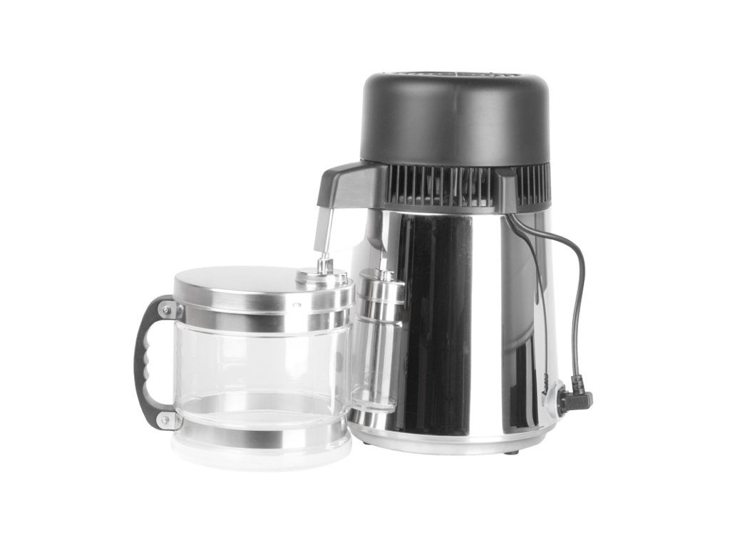 Nepotřebuje připojení k externímu přívodu vody. Má 4litrovou nádrž na vodu a destilovaná voda se shromažďuje ve skleněné nádrži, která je součástí vybavení zařízení.
