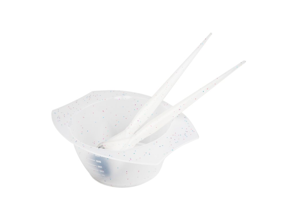 Profesionální sada nástrojů na barvení vlasů. Sada obsahuje 1 mixovací misku a dva štětce.