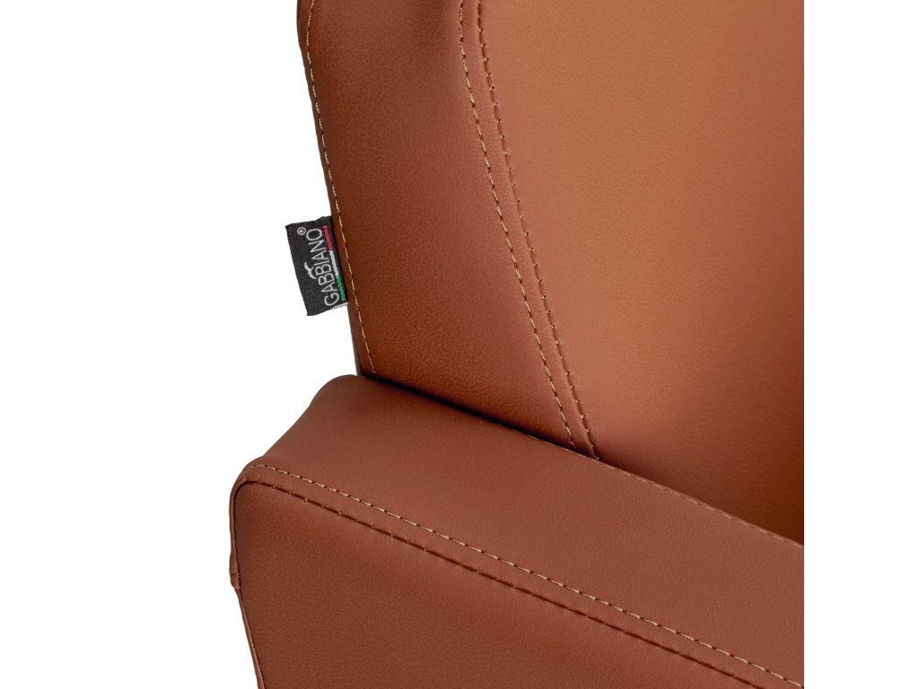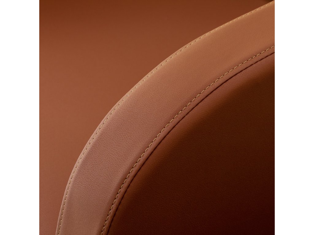 Čalounění z hnědé syntetické kůže dodává křeslu elegantní a moderní vzhled, zatímco matná černá čtvercová základna zajišťuje stabilitu a odolnost. Materiály jsou snadno omyvatelné a odolné vůči vlhkosti, díky čemuž si křeslo zachová svůj atraktivní vzhled po mnoho let.