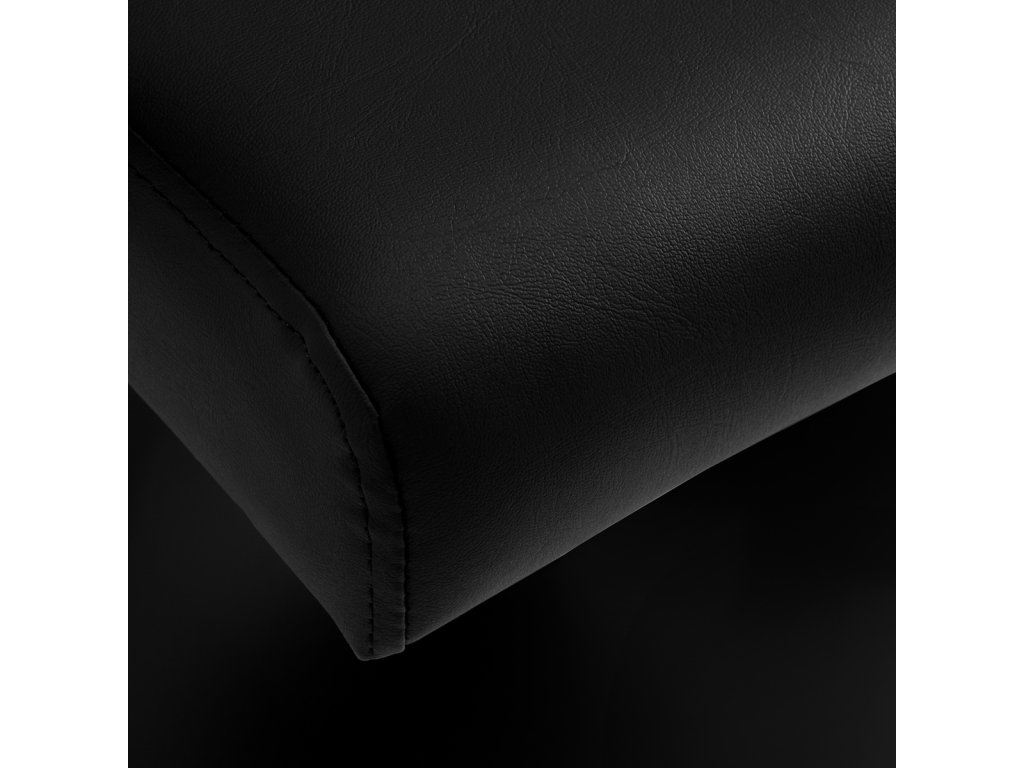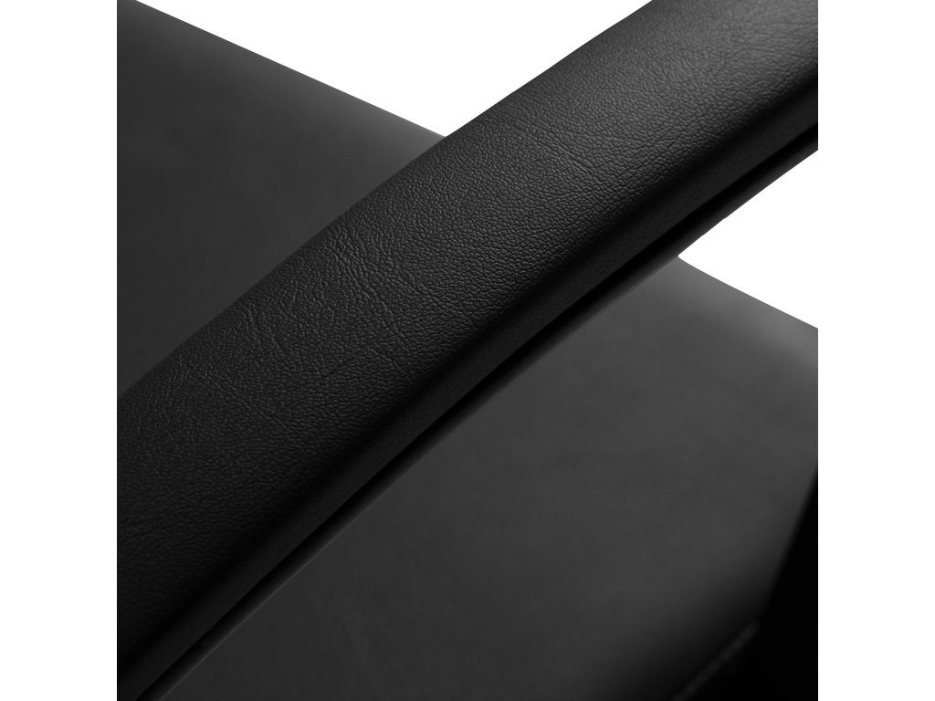 Sedák je vyplněn kvalitní pěnou odolnou proti deformacím, která zajišťuje dlouhou životnost a zachování tvaru křesla. Čalounění z příjemné imitace kůže je odolné vůči vlhkosti, velmi trvanlivé a snadno se čistí. Sytě černá barva dodává křeslu nadčasovou eleganci a umožňuje jeho snadné začlenění do téměř jakéhokoli interiéru.