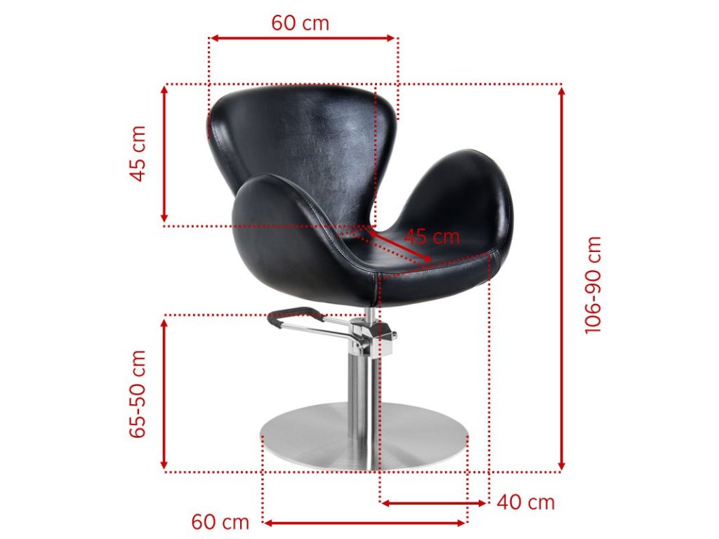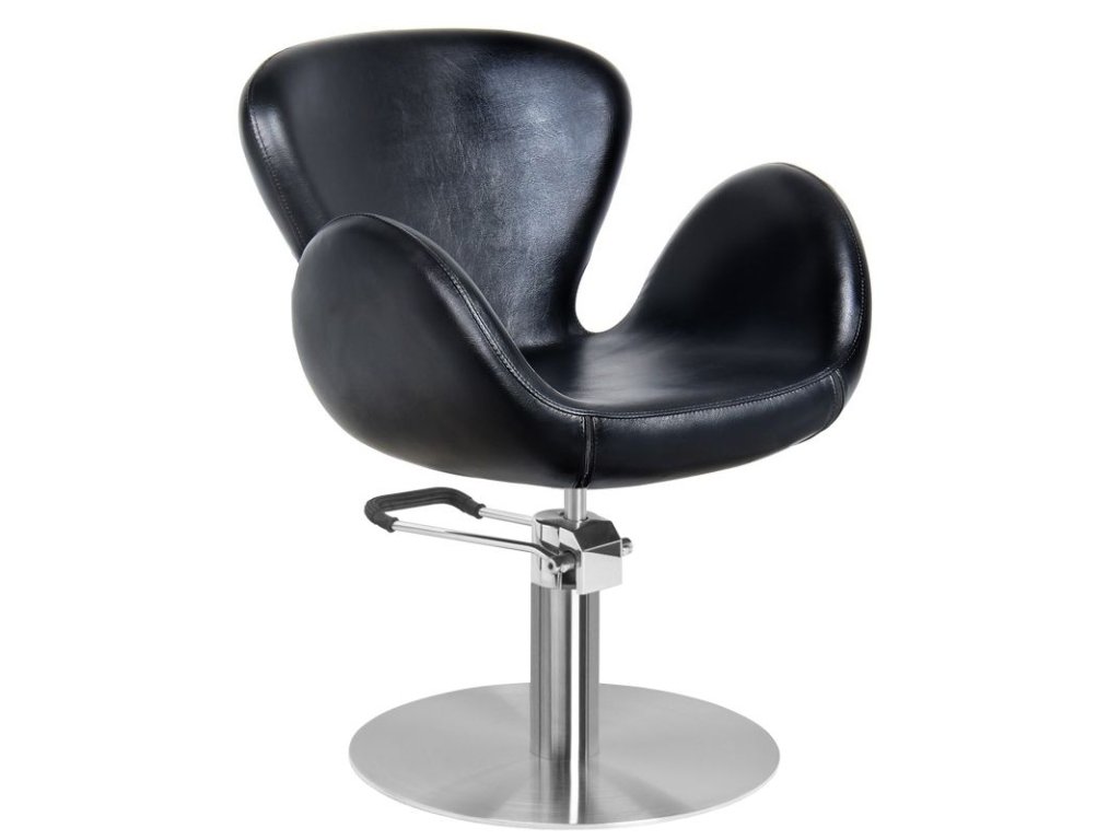 Moderní kadeřnické křeslo s jedinečným designem. Velmi pohodlný, ideální pro moderní kadeřnické salony. Černá barva. Speciálně profilované podle nejnovějších trendů.