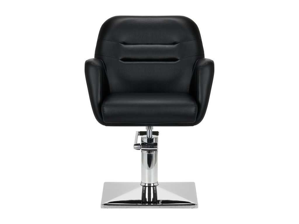 Pevná obdélníková základna zaručuje stabilitu při používání . Hladký povrch se zrcadlovou úpravou usnadňuje údržbu tohoto prvku. Sedák s pěnovou výplní zajišťuje vysoký komfort používání a pohodlí i při mnohahodinových ošetřeních . Mechanismus plné rotace dělá práci kadeřníka efektivnější a pohodlnější. Područky umístěné ve vhodné výšce umožňují správné umístění klientových ramen - to znamená, že nezaboří hlavu do ramen ani se nehrbí - což jednoznačně usnadňuje přesné provádění ošetření včetně střihů.