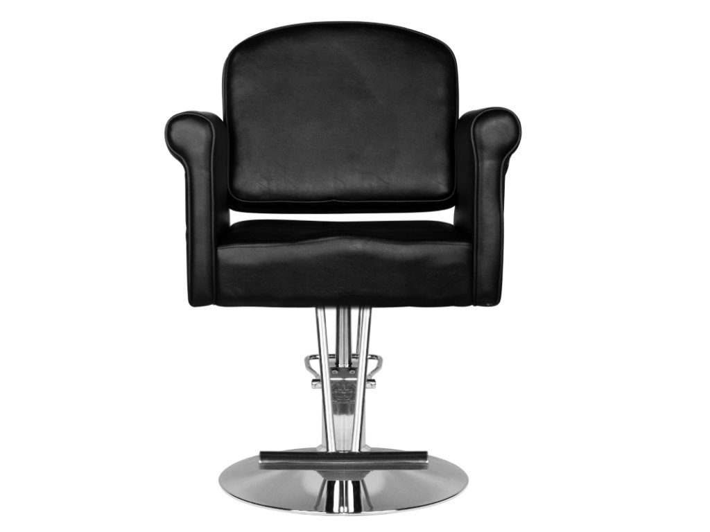 Moderní kadeřnické křeslo značky HAIR SYSTEM. Elagantní a velmi pohodlné. Pevný chromovaný podstavec zaručuje stabilitu sedadla. Potah je vyroben z vysoce kvalitní černé ekokože. Židle je nastavitelná nahoru a dolů