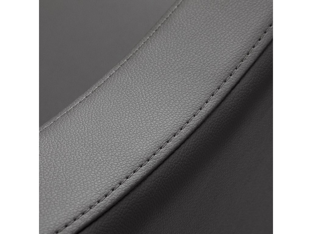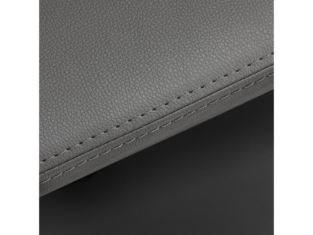 Čalounění z kvalitní syntetické kůže v sofistikovaném šedém odstínu má polomatný povrch, který je odolný vůči vlhkosti a snadno se čistí. Pěnová výplň zajišťuje měkkost a pohodlí při sezení.