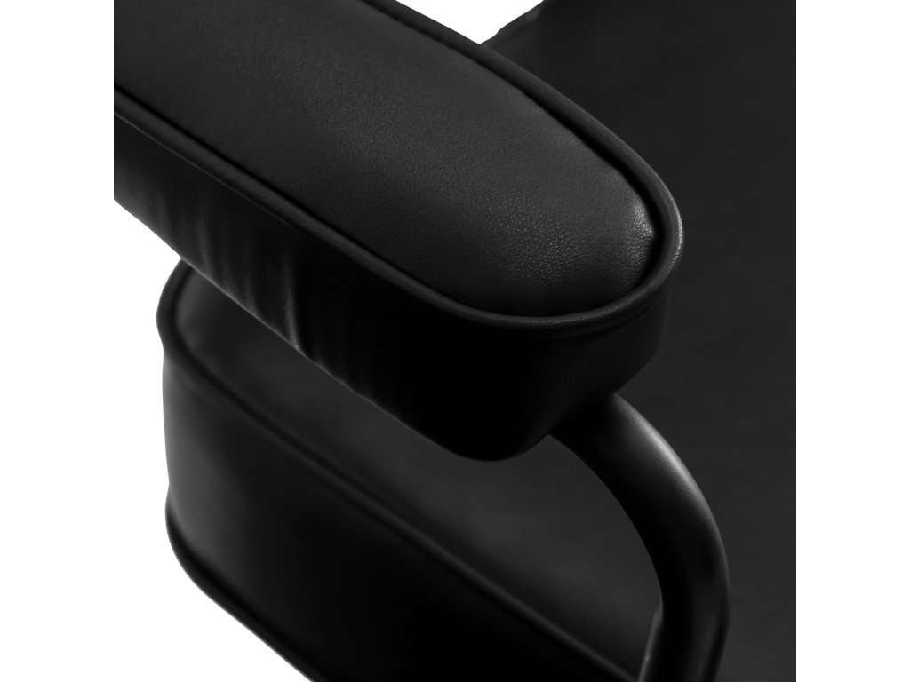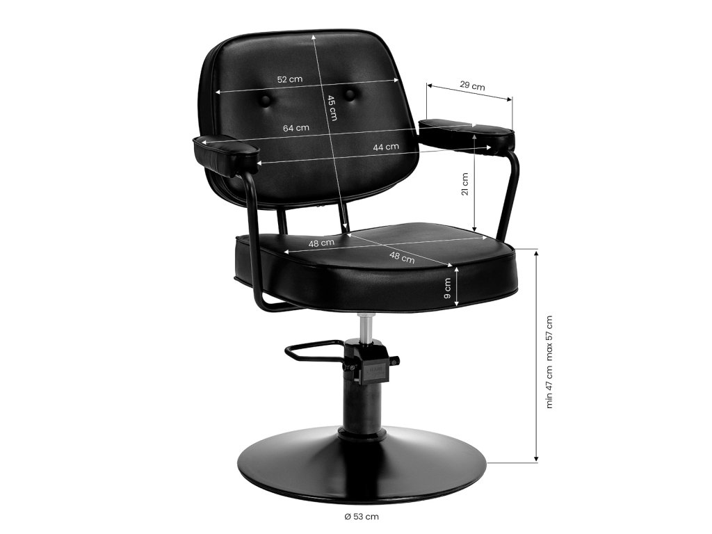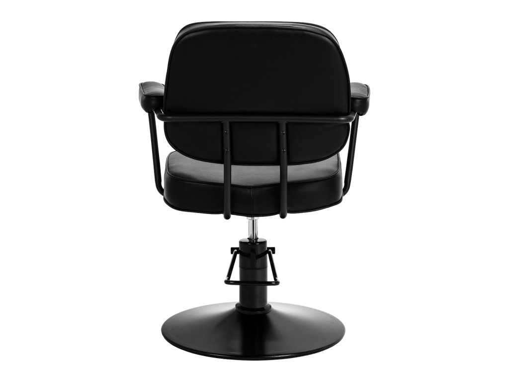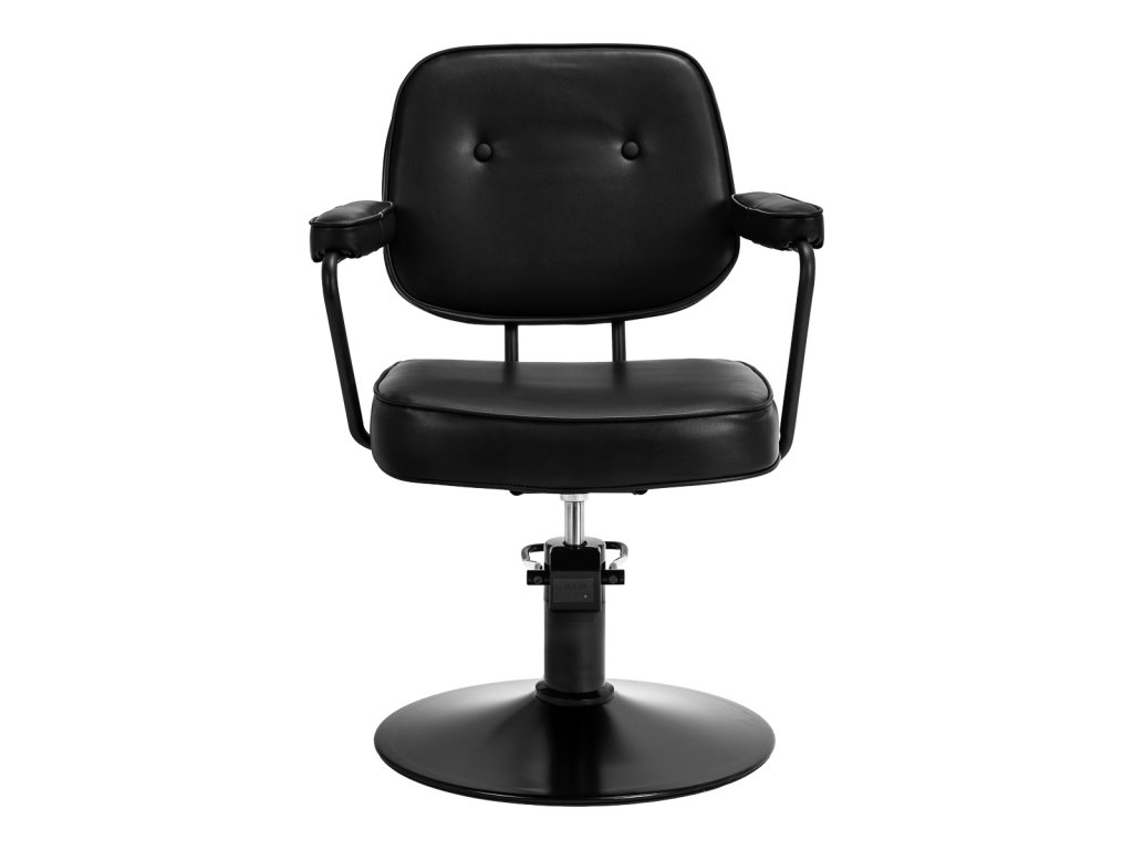 Jednoduchý, minimalistický design kombinuje moderní vzhled s vysokou stabilitou a odolností. Čalounění ze syntetické kůže v odstínech černé je odolné vůči vlhkosti, snadno se udržuje a zajišťuje dlouhou životnost křesla. Černá kulatá základna poskytuje pevnou stabilitu a podtrhuje elegantní charakter produktu. Precizní detaily svědčí o vysoké kvalitě zpracování a umožňují snadné začlenění křesla do různých stylů kadeřnických salonů.