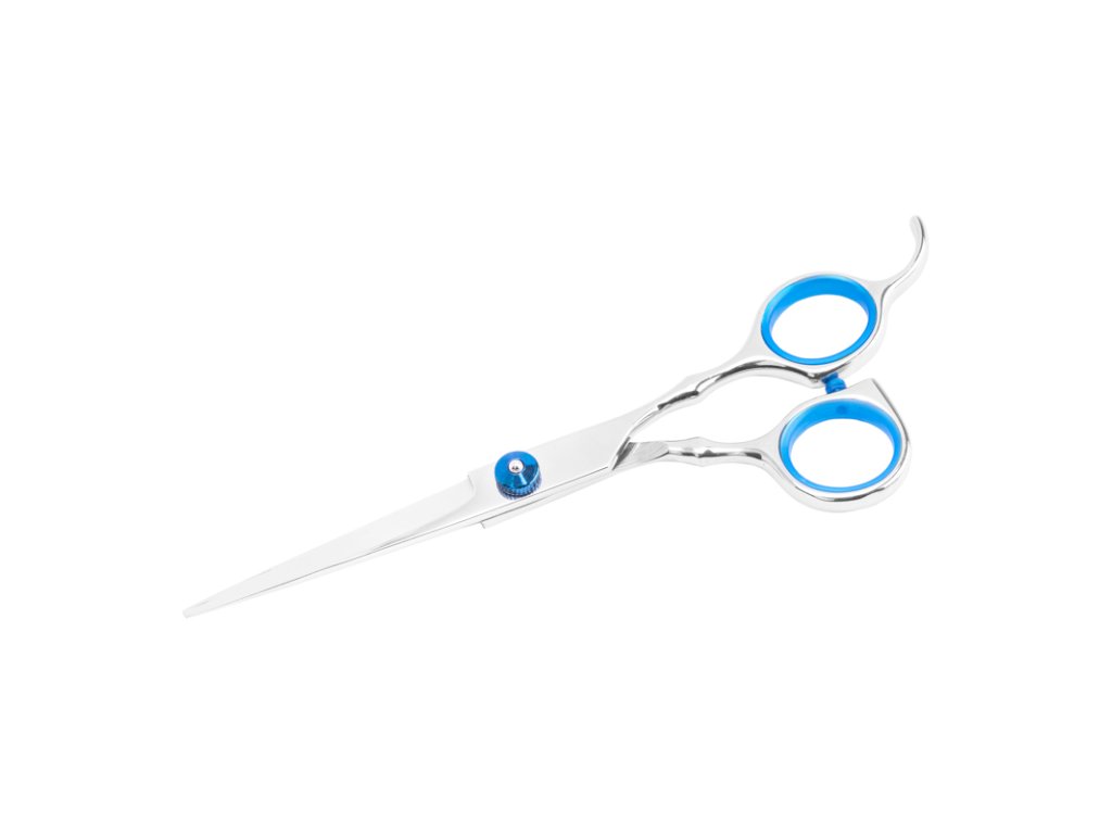 Stříbrné - Modré kadeřnické nůžky 6" by měly být v každém kadeřnickém salonu. Jsou vyrobeny z nejkvalitnější oceli. Výrobek si po dlouhou dobu zachovává vynikající vlastnosti, díky čemuž je střih přesný a hladký. Nárazník mezi očky výrazně zvyšuje komfort práce.