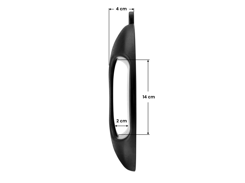 Kadeřnické zrcadlo v černém pouzdře s madlem na zadní straně. Perfektní pro práci v kadeřnictví, kde klientovi ukážete účes na zadní straně hlavy.