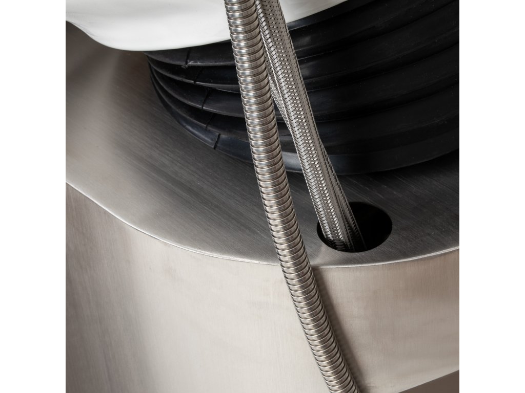 Myčka je vybavena směšovací baterií s možností regulace teploty vody, sprchovou hlavicí a chromovaným odpadem se sítkem pro zachycení nečistot. Všechny přívody vody jsou skryté uvnitř sloupku pod umyvadlem, přičemž odnímatelný panel usnadňuje případný servis.