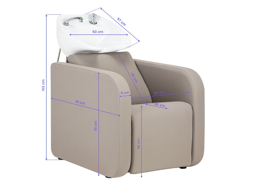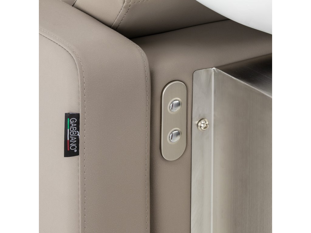 Křeslo je čalouněné kvalitní syntetickou kůží v elegantní béžové barvě, která je odolná a nenáročná na údržbu. Přímé linie sedáku a područek dodávají celé konstrukci moderní vzhled, zatímco pohodlná pěnová výplň zajišťuje dlouhodobé pohodlí. Kompletní armatura v chromovém provedení dodává myčce exkluzivní vzhled a připravenost k okamžitému použití.