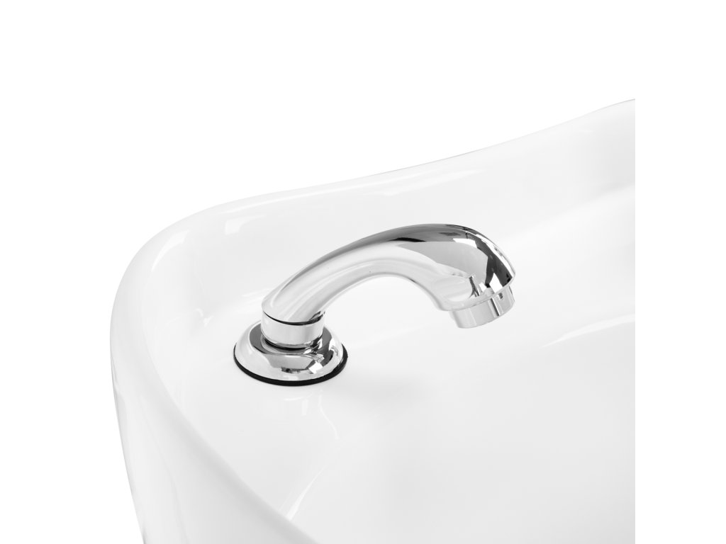 Vhodná hloubka bílé keramické umyvadlové mísy zabraňuje nadměrnému stříkání vody nebo přípravků používaných během procedur. To umožňuje pohodlné a efektivní provádění široké škály služeb . Úhel mísy lze nastavit, takže se snadno přizpůsobí individuálním potřebám . Díky vysoké kvalitě použitých materiálů je umyvadlo odolné, odolné proti zabarvení a poškrábání a velmi snadno se čistí . Správně profilovaný límec a šikmá zádová opěrka poskytují oporu a pohodlí při mytí vlasů a díky pohodlnému černému plastovému potahu zákazník nepocítí nepříjemnosti studeného keramického povrchu.