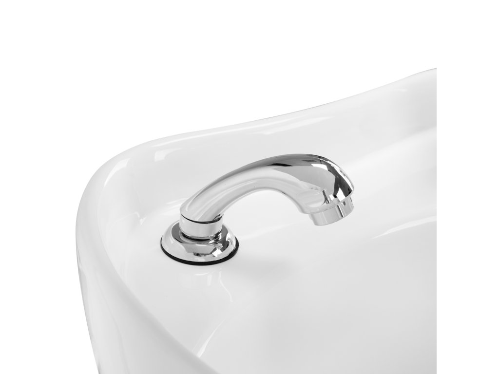 Vhodná hloubka bílé keramické umyvadlové mísy zabraňuje nadměrnému stříkání vody nebo přípravků používaných během procedur. To umožňuje pohodlné a efektivní provádění široké škály služeb . Úhel mísy lze nastavit, takže se snadno přizpůsobí individuálním potřebám . Díky vysoké kvalitě použitých materiálů je umyvadlo odolné proti zabarvení a poškrábání a velmi snadno se čistí . Správně profilovaný límec a šikmá zádová opěrka poskytují oporu a pohodlí při mytí vlasů a díky pohodlnému černému plastovému potahu zákazník nepocítí nepříjemnosti studeného keramického povrchu.