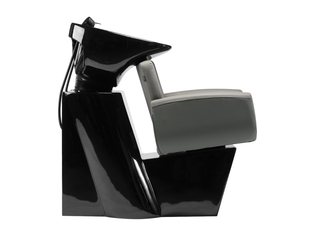 Minimalistické sedadlo s charakteristickým zaobleným tvarem a ergonomickým opěradlem poskytuje klientovi pohodlí při mytí vlasů, barvení i pečujících rituálech. Čalounění z kvalitní syntetické kůže je příjemné na dotek, odolné proti vlhkosti a opotřebení a snadno se čistí, což zaručuje hygienu a dlouhou životnost.
