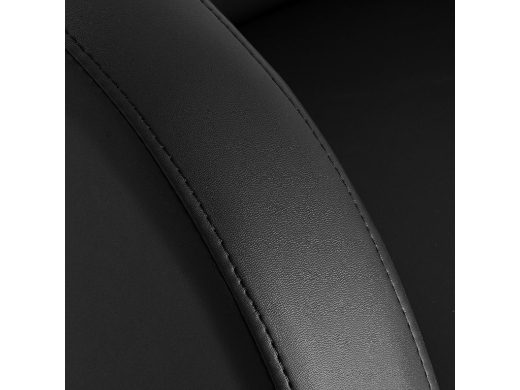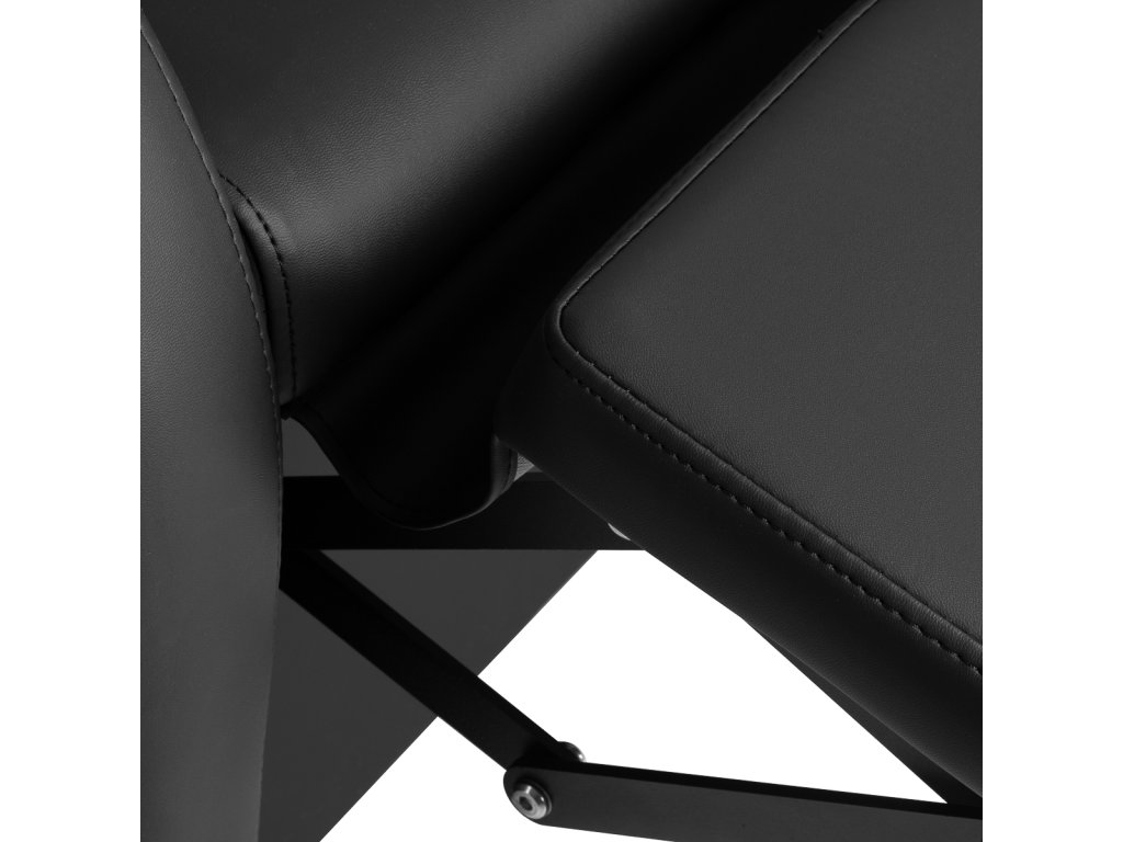 Ergonomicky tvarovaný sedák s odolným čalouněním ze syntetické kůže v černé barvě zajišťuje správnou oporu zad i lumbální oblasti. Polstrované područky pomáhají správnému držení ramen a zvyšují komfort během delších procedur. Materiál čalounění je příjemný na dotek, odolný proti vlhkosti a snadno se udržuje čistý.