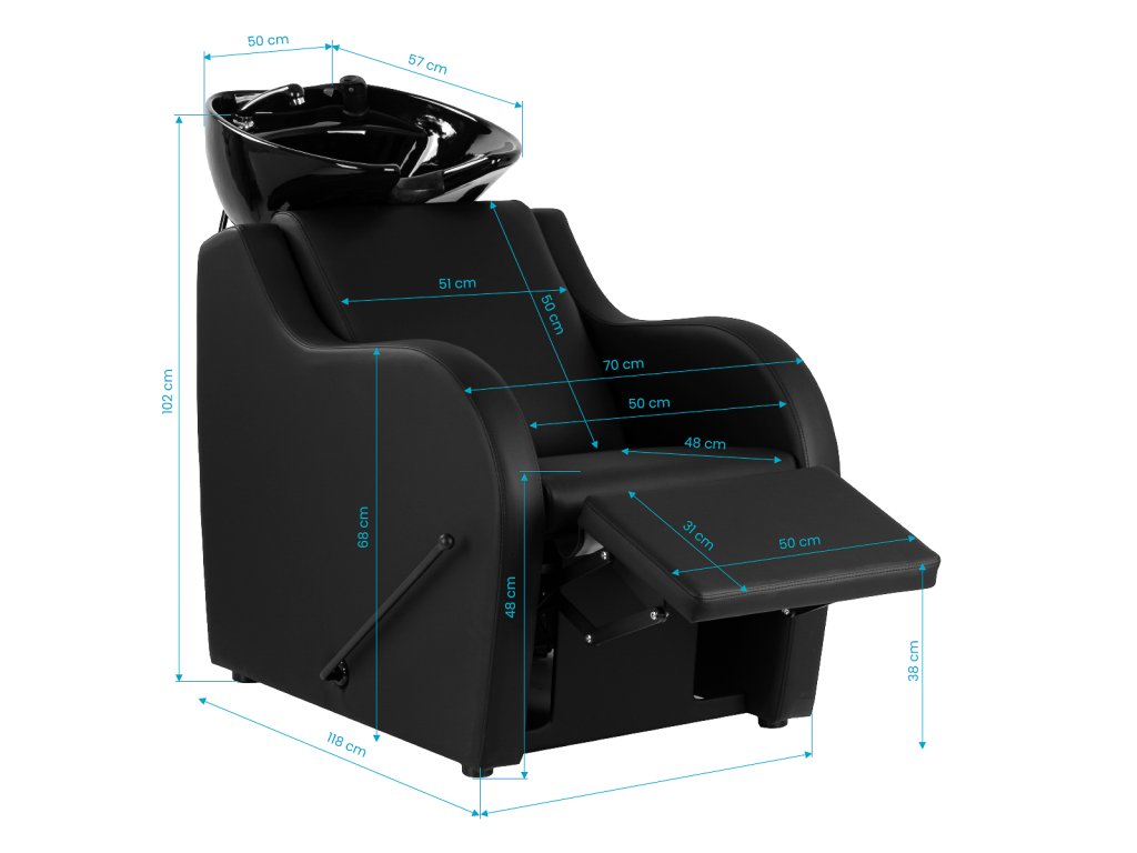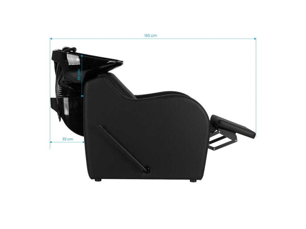 Manuálně nastavitelný podnožník, ovládaný jednoduchou pákou, umožňuje klientovi zaujmout pohodlnou polohu při mytí vlasů, barvení nebo dalších úpravách. Díky tomu je procedura příjemnější a méně namáhavá pro nohy.