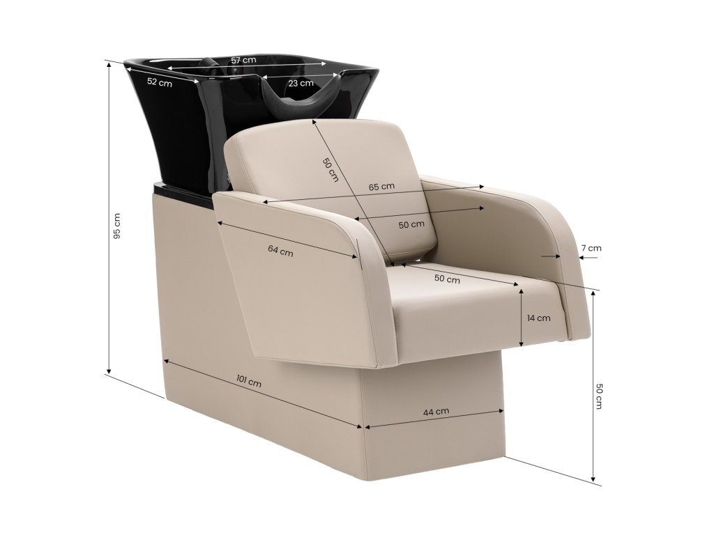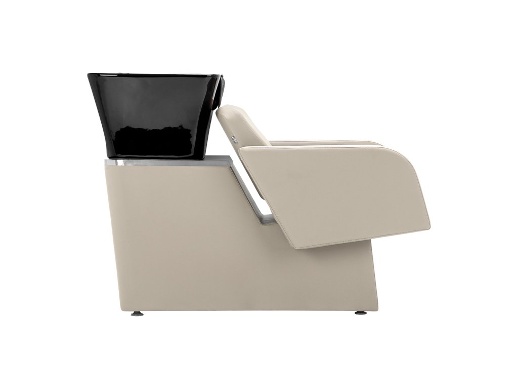 Ergonomicky tvarované sedadlo s jemně nakloněným opěradlem poskytuje klientovi pohodlí během mytí vlasů, barvení či pečujících procedur. Čalounění z kvalitní syntetické kůže je příjemné na dotek, odolné proti vlhkosti a snadno se čistí, což zaručuje hygienu a dlouhou životnost i při každodenním používání.