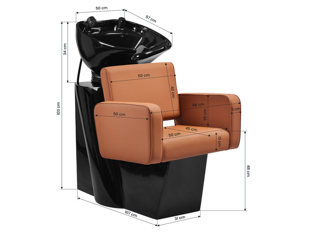 Ergonomicky tvarované sedadlo se širokými područními opěrkami poskytuje klientům vysoký komfort během mytí vlasů, barvicích procedur či ošetření vlasové pokožky. Syntetická kůže odolná proti opotřebení je příjemná na dotek, snadno se čistí a zajišťuje perfektní hygienu i při častém používání.