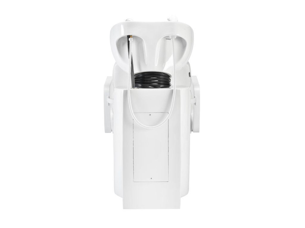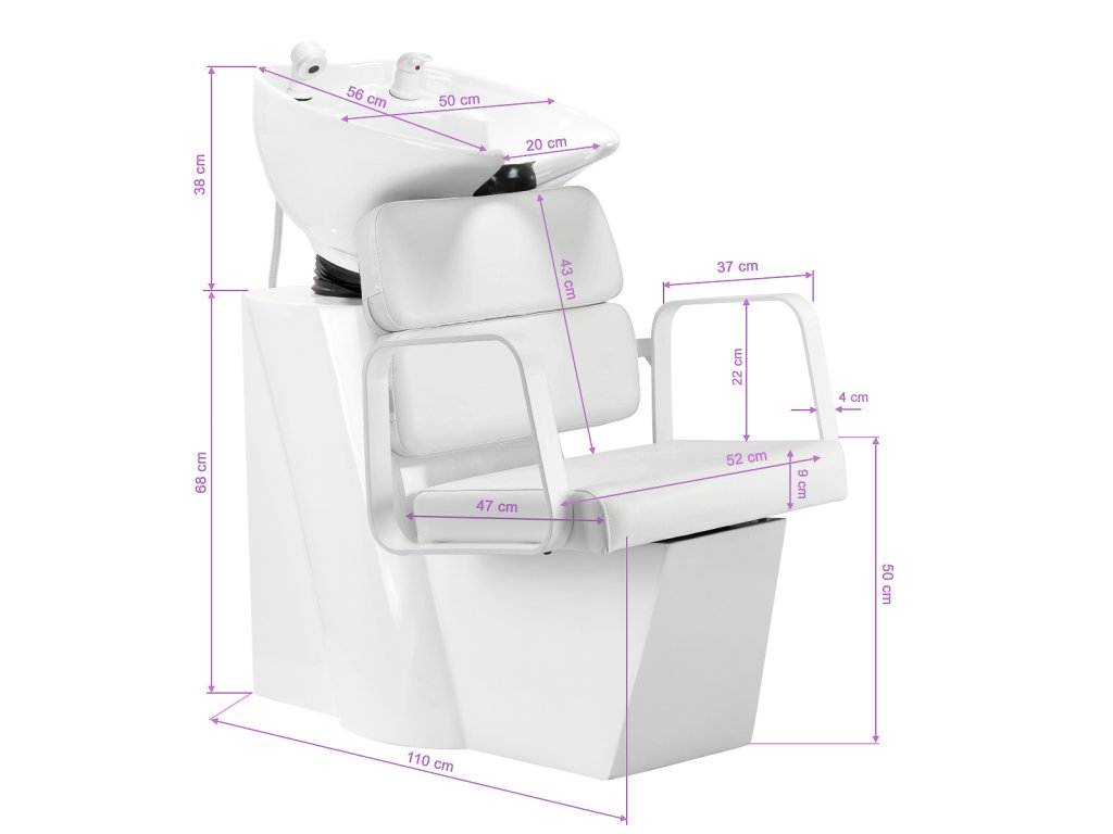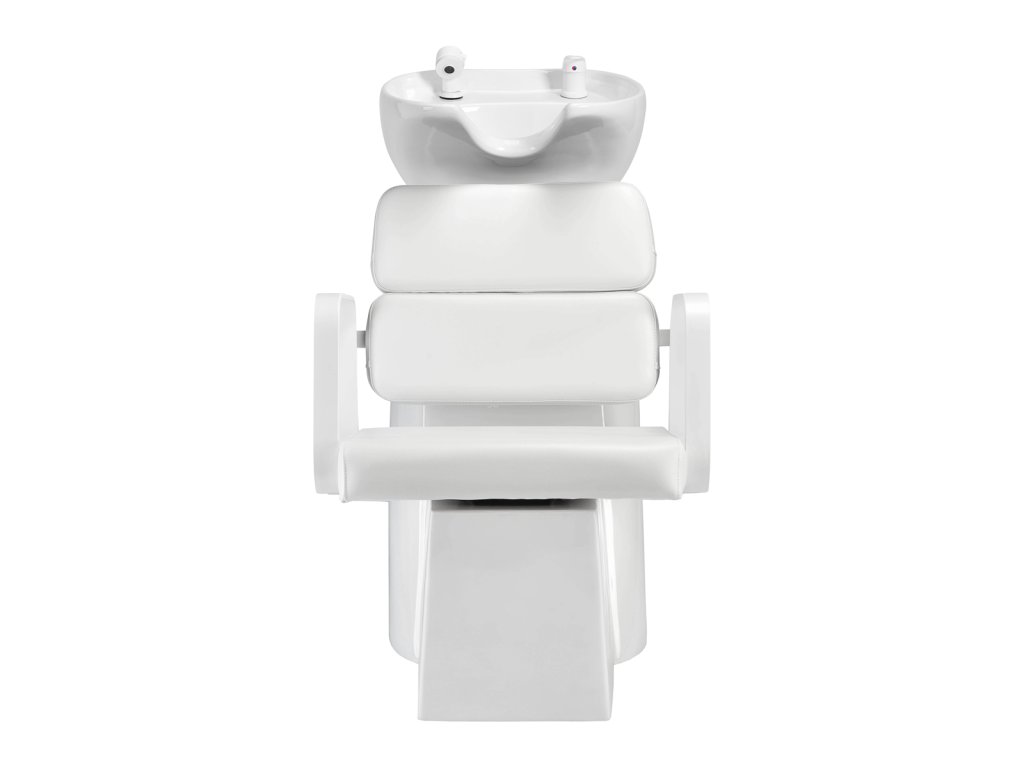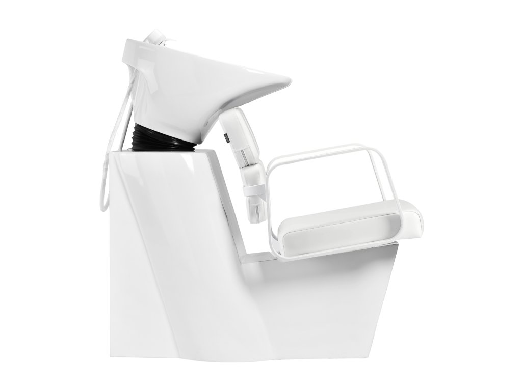Kombinace bílé podstavy, bílého čalounění a černé keramické mísy vytváří čistý, nadčasový design, který se hodí do klasických i moderních kadeřnických salonů. Hluboká keramická mísa zabraňuje rozstřikování vody i kosmetických přípravků a díky nastavitelnému úhlu se snadno přizpůsobí individuálním potřebám klienta. Povrch je odolný vůči poškrábání a skvrnám, a proto se velmi snadno čistí.