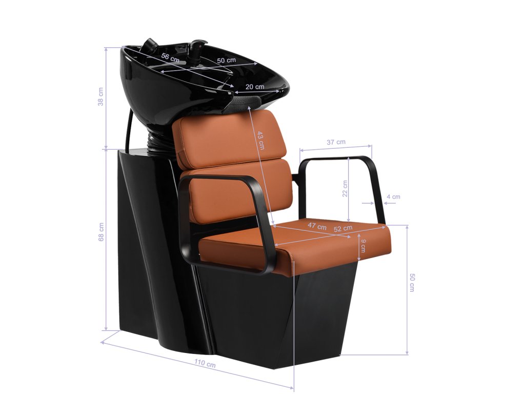 Černá keramická mísa je dostatečně hluboká, aby zabránila rozstřikování vody a vlasové kosmetiky. Díky nastavitelnému úhlu umyvadla se snadno přizpůsobí individuálním potřebám každého klienta. Povrch je odolný proti poškrábání i zabarvení a snadno se udržuje čistý.